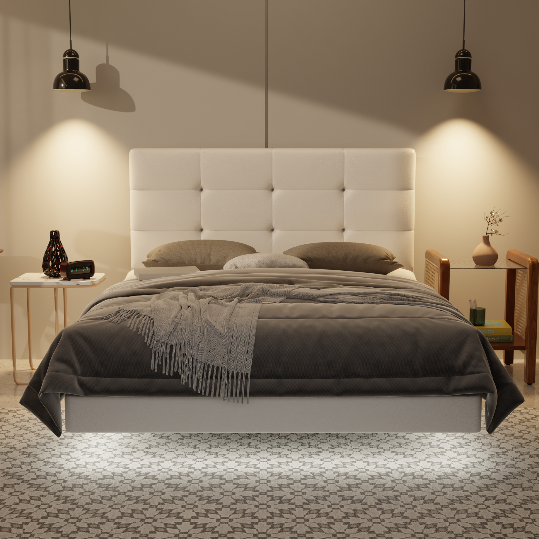 Experience luxury and innovation with the Rachelle Genuine Leather Floating Bed Frame. This stunning piece combines authentic leather upholstery with a contemporary floating design that creates an illusion of space and elegance in any bedroom. The integrated LED lighting adds a sophisticated ambiance, perfect for creating the ideal atmosphere for relaxation or intimate moments. Crafted with premium materials, the Rachelle transforms your bedroom into a modern sanctuary while providing exceptional comfort and style that elevates your everyday living.