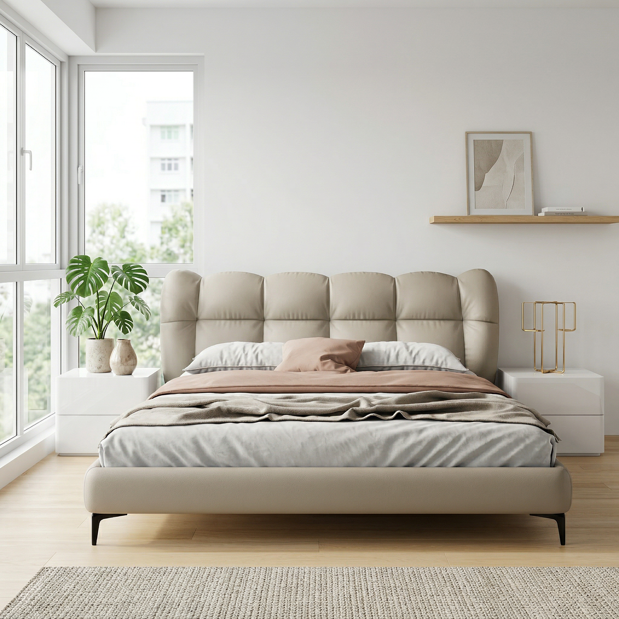 The Venora Leather Bed Frame blends refined design, durable craftsmanship, and plush upholstered comfort—creating a sophisticated centerpiece for modern bedrooms.
