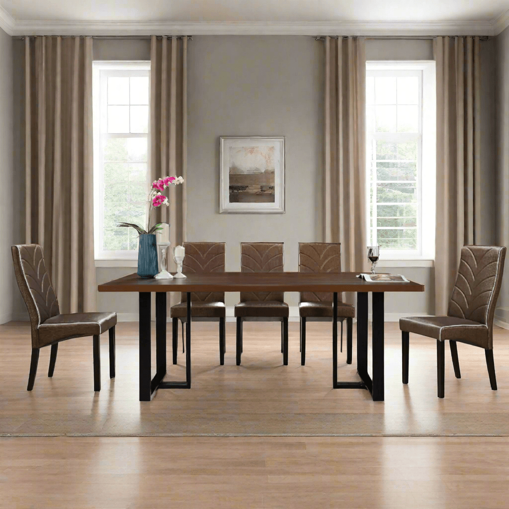 - Faux Leather Dining Chairs – High back design with solid wood structure for lasting comfort.