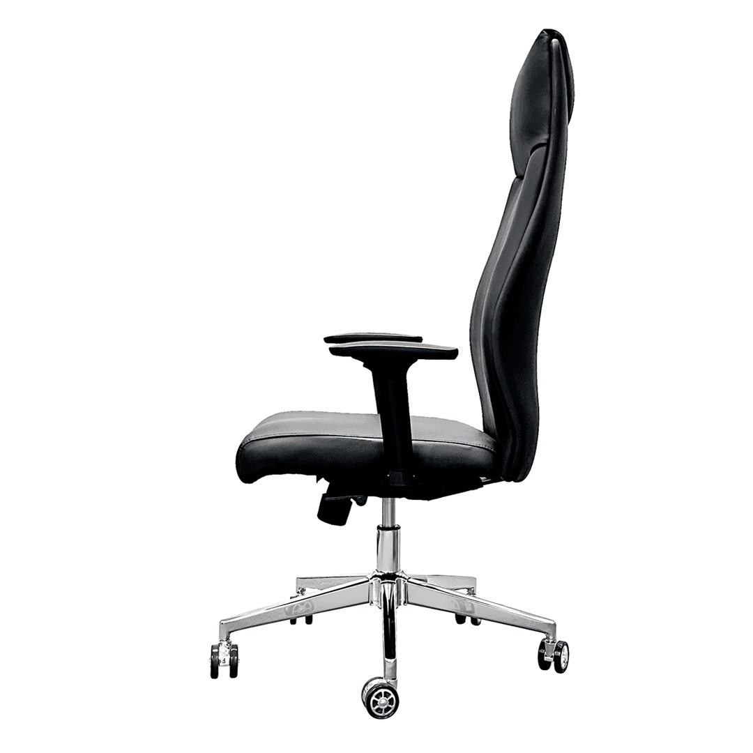 The Marty Faux Leather Office Chair is a blend of comfort and style for your workspace. Crafted with durable PU leather, it features a high backrest and high-density foam seat for optimum support. The 3D armrest and multi-angle adjustment provide flexibility, while the chrome-plated wheelbase with big PU wheels ensures smooth mobility
