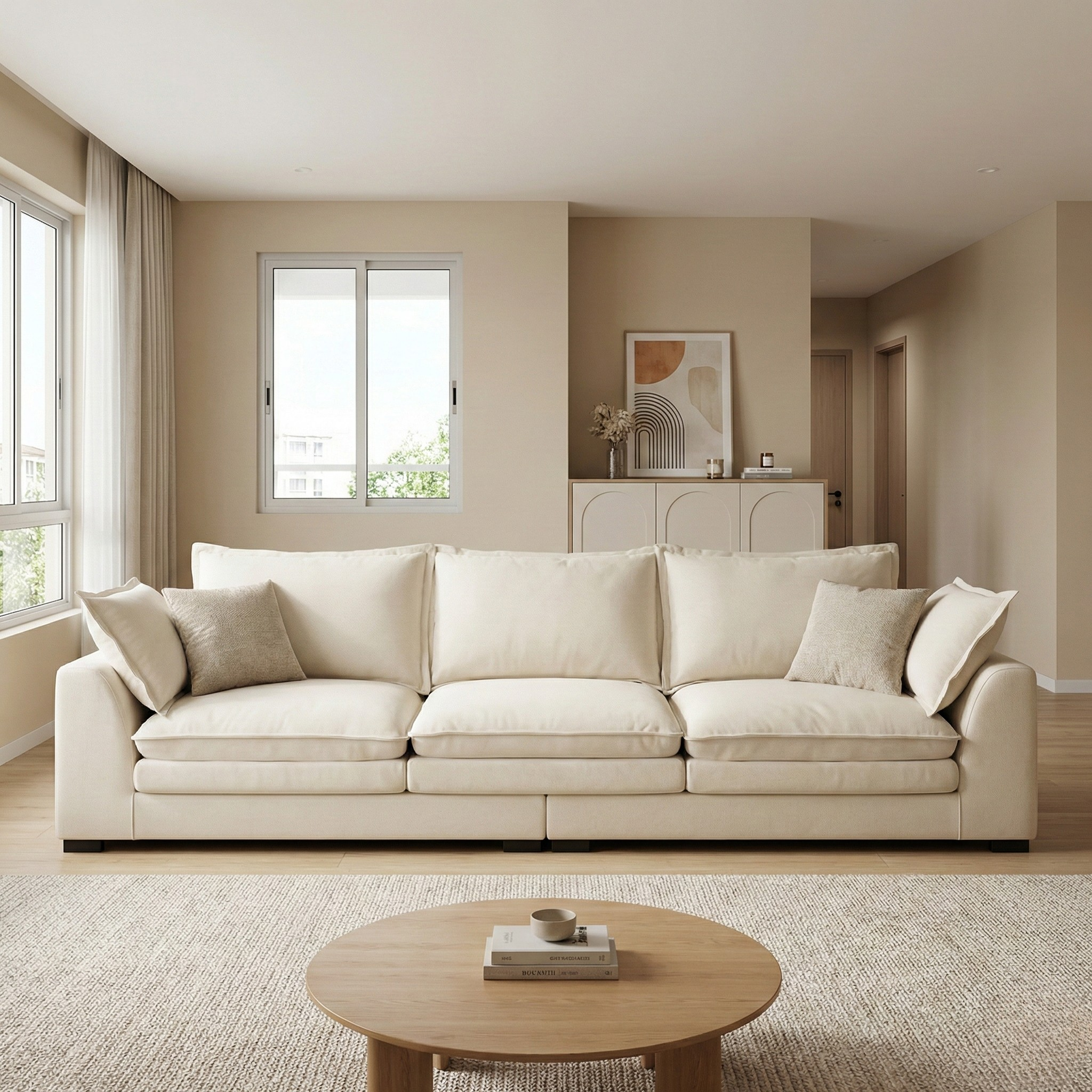 Built on a durable solid wood internal frame, the sofa provides long-term structural stability and dependable performance. The backrests and armrests are filled with premium fleece cushioning, offering soft yet supportive comfort. The seat cushions feature a layered construction of latex granules and high-density foam, engineered for responsive rebound, superior pressure distribution, and lasting shape retention.