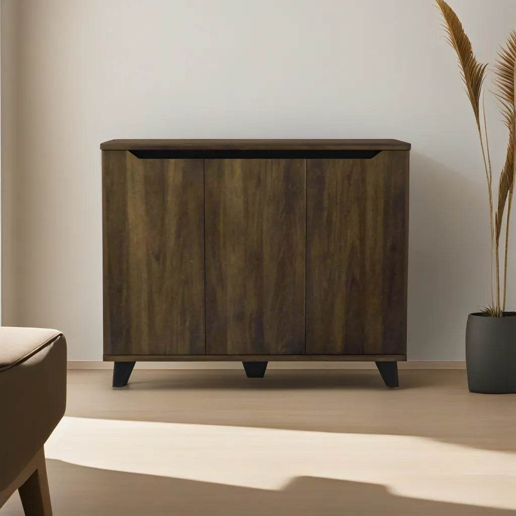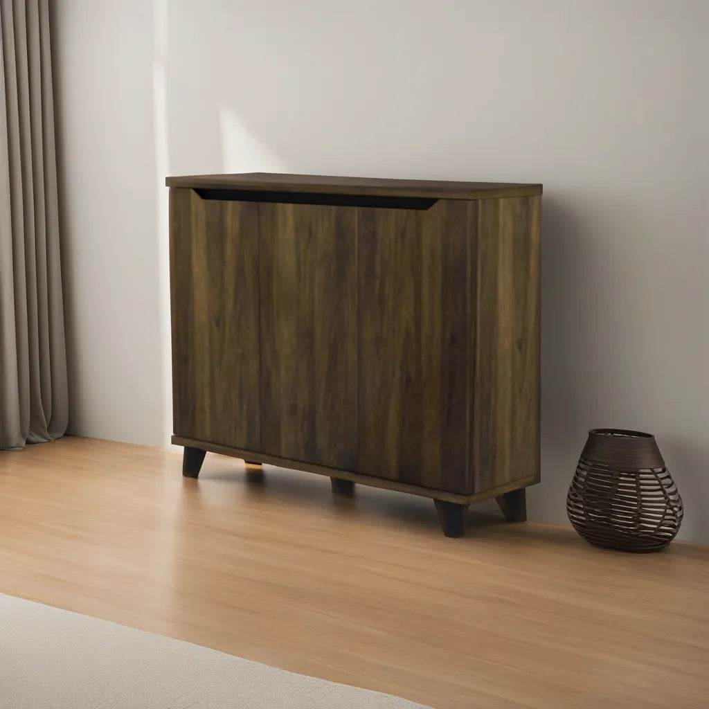 Crafted from high-quality wood, the Melpen 3 Door Shoe Cabinet boasts a clean, streamlined design emphasising simplicity and elegance. The splayed legs ensure stability and elevate the cabinet off the floor, making cleaning underneath a breeze. With three spacious doors, the Melpen provides ample storage for your footwear.