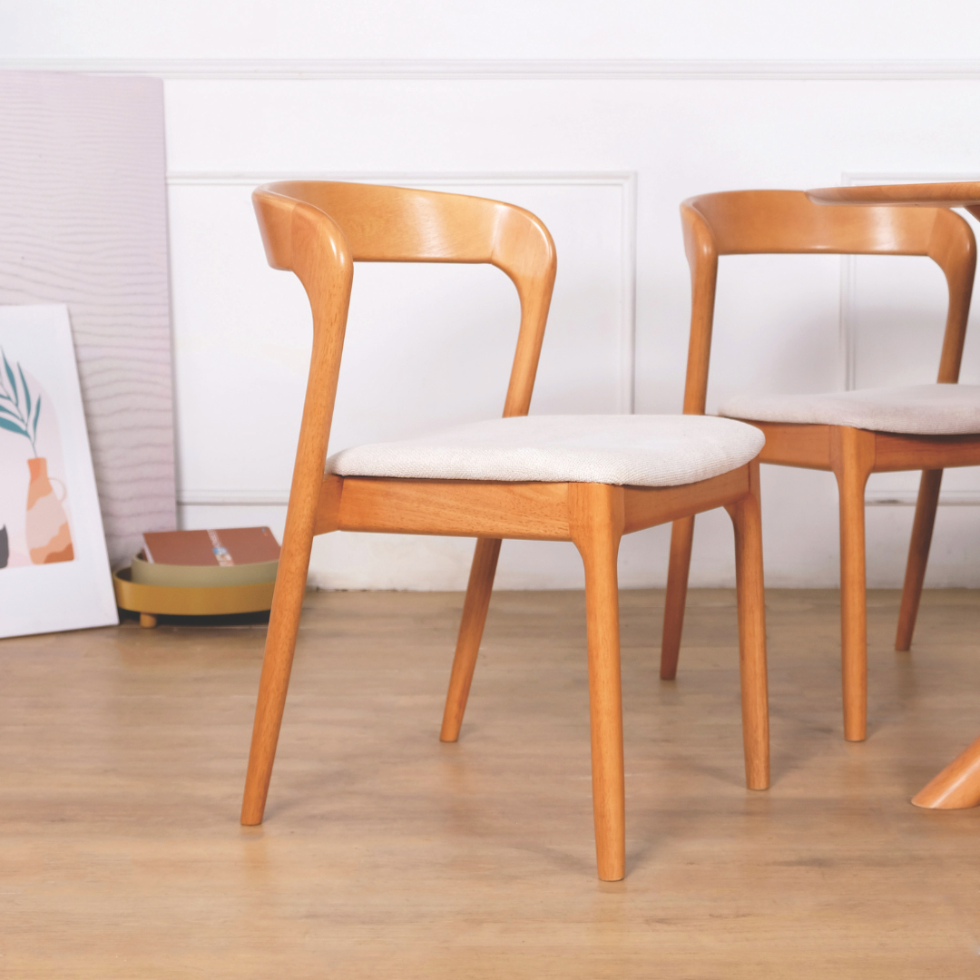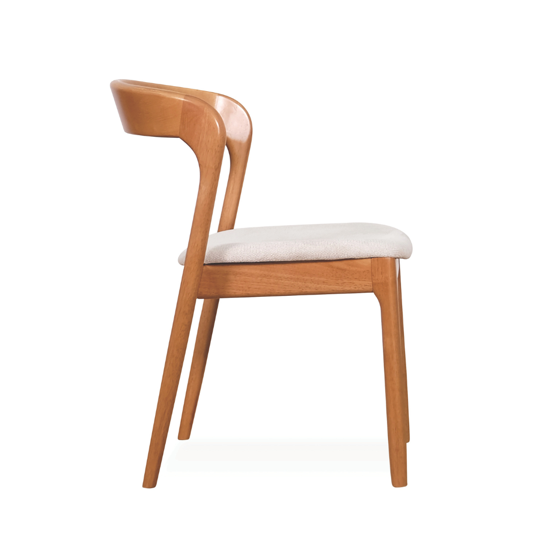 The Gubee Wooden Dining Chair is a masterpiece of modern organic design. Featuring a seamless, wrap-around backrest that flows effortlessly into the structural frame, this chair brings a touch of designer luxury to any setting. Its open-back silhouette and refined curves make it a versatile anchor for contemporary Singaporean homes, blending high-end aesthetics with ergonomic comfort.
