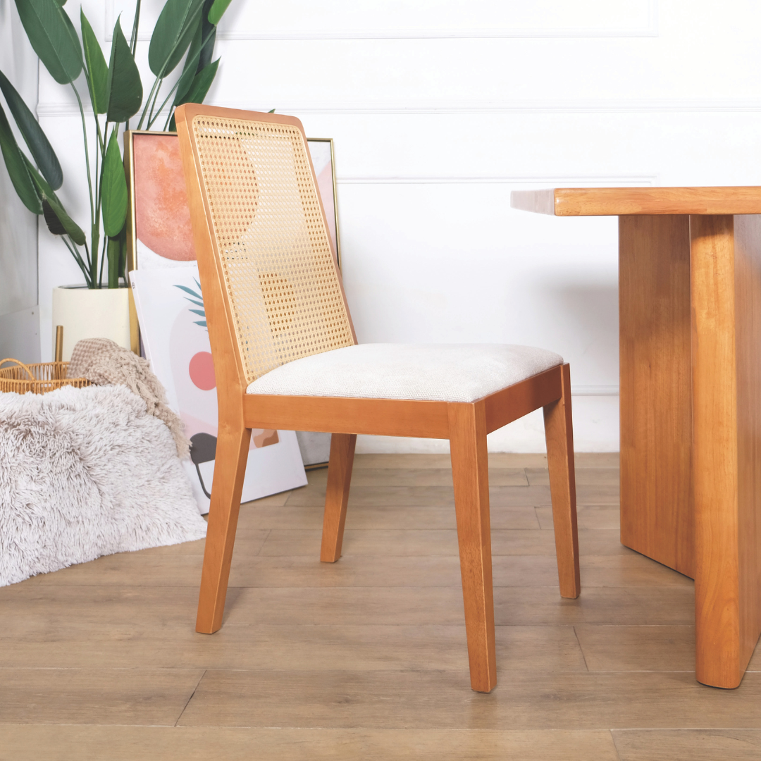 The Raven Dining Chair is designed for those who appreciate a more formal dining posture without sacrificing a relaxed, organic feel. Its tall backrest is inset with premium PE rattan, offering a breathable surface that is perfect for Singapore’s humid climate. Unlike traditional high-back chairs that can feel heavy, the Raven’s woven detail allows light to pass through, creating a sense of spaciousness around your dining table.