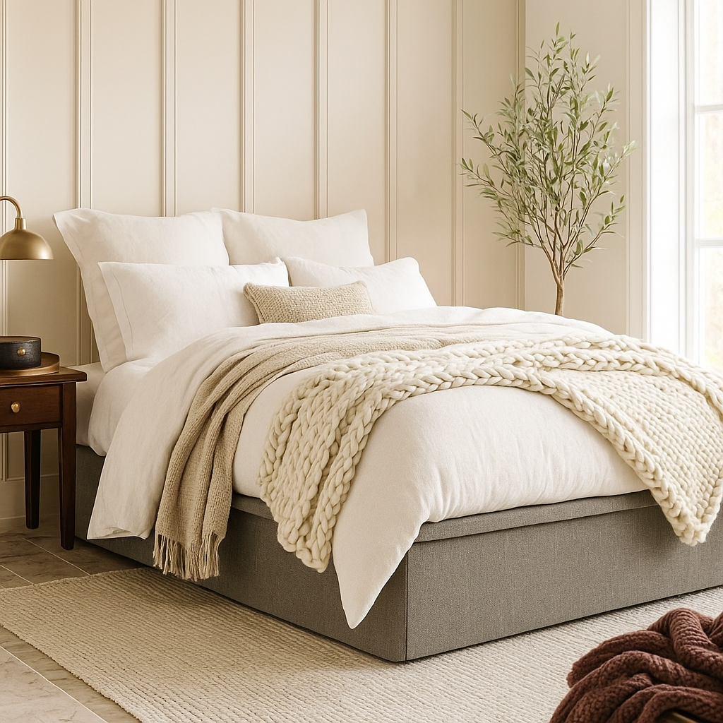 Elevate your bedroom with our renowned Brenna Storage Bed Frame, now featuring a water-repellent property. Made for both elegance and utility, this storage bed frame boasts discreet under-bed storage unit for your bedding, linens, and clothes for a more organised and clutter-free bedroom look. Additionally, the water-resistant fabric safeguards against spills, offering a stylish and practical solution for your cosy bedroom. Embrace a clutter-free haven with this sophisticated, functional bed frame with storage for a more restful sleep every night.