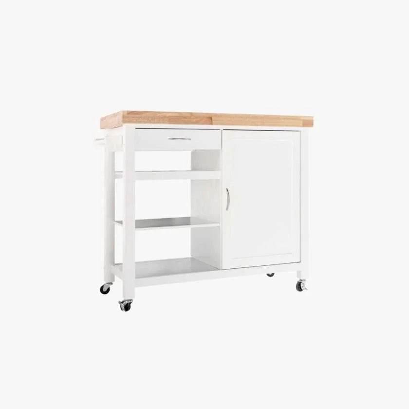 Kitchen Trolley Singapore from Hadley: Its sleek, white Scandinavian-inspired design complements modern kitchen interiors.