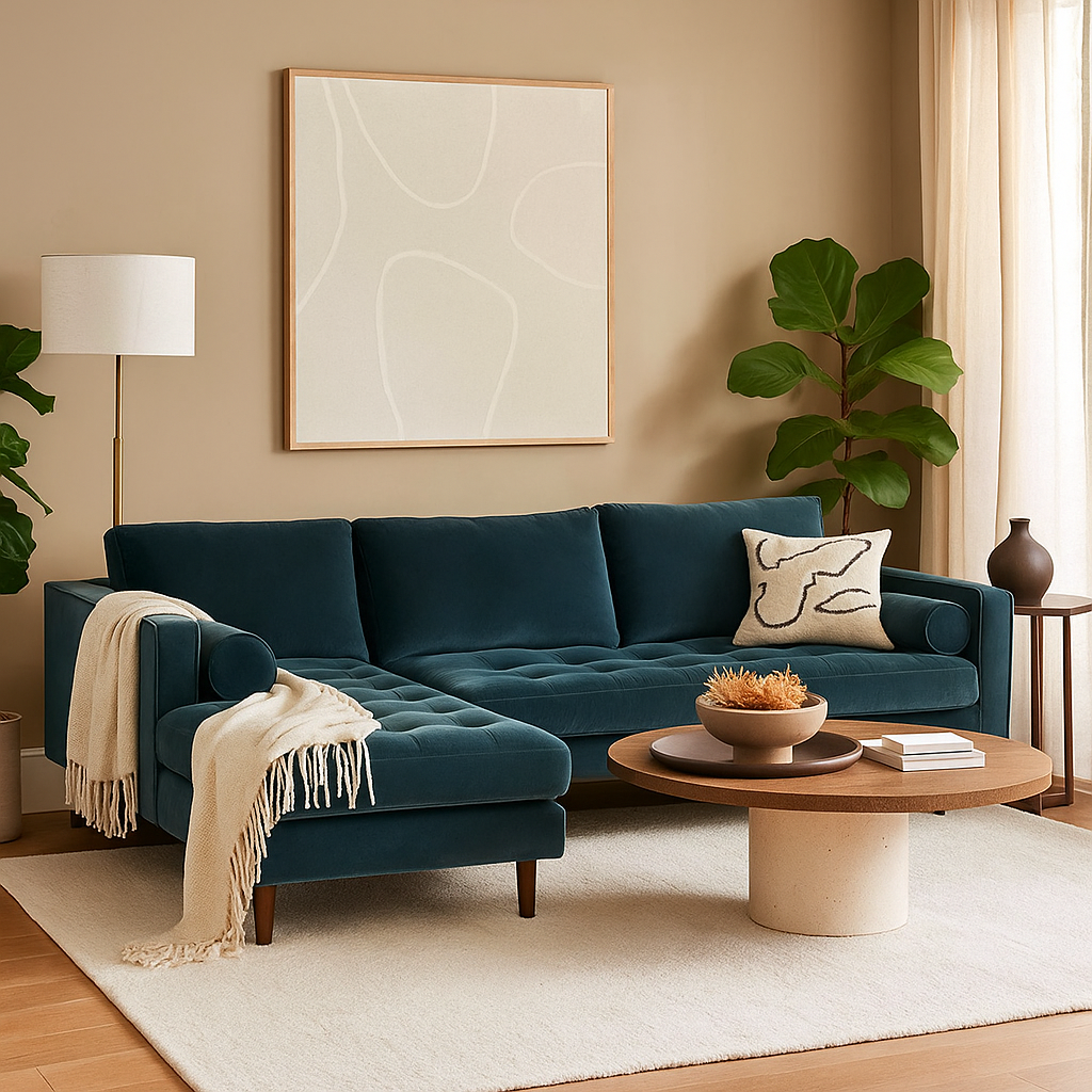 Introduce luxurious comfort to your living space with the Ashla L-Shape Velvet Fabric Sofa. Its modern design and soft velvet fabric create a cozy and sophisticated touch to any room. The perfect piece to relax, entertain, or take a nap on!