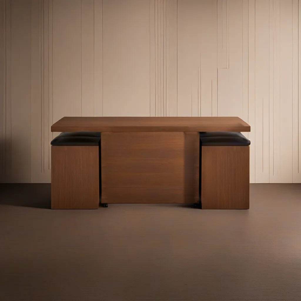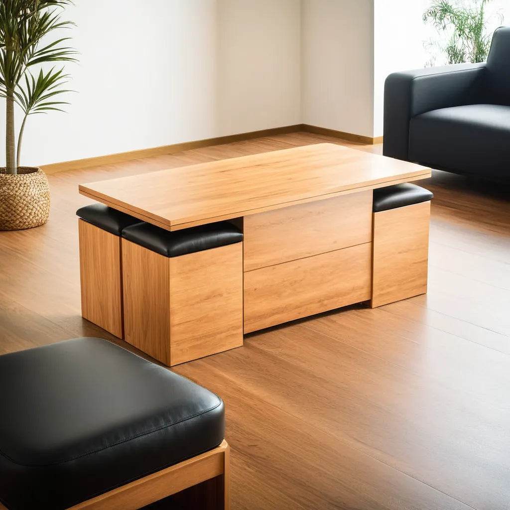 With its dual drawers and cleverly hidden stools, this coffee table is a multitasker’s dream.