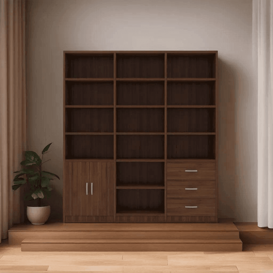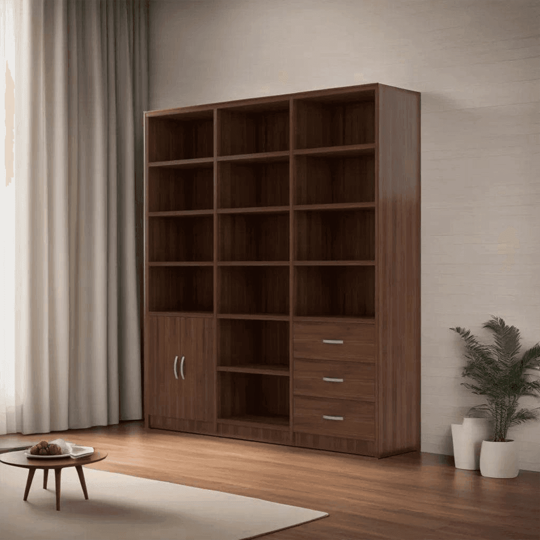 Have you ever become frustrated with too many things and nowhere to 'chup' (store) them neatly? Fret not! This bookshelf is a game-changer with its chic laminated finish, perfect for adding a touch of class to any Singaporean home. Featuring its two doors and three drawers, keeping your favourite reads, knick-knacks, and more all organised is a breeze. Plus, the additional shelves? It is ideal for showcasing your treasured souvenirs or family photos.