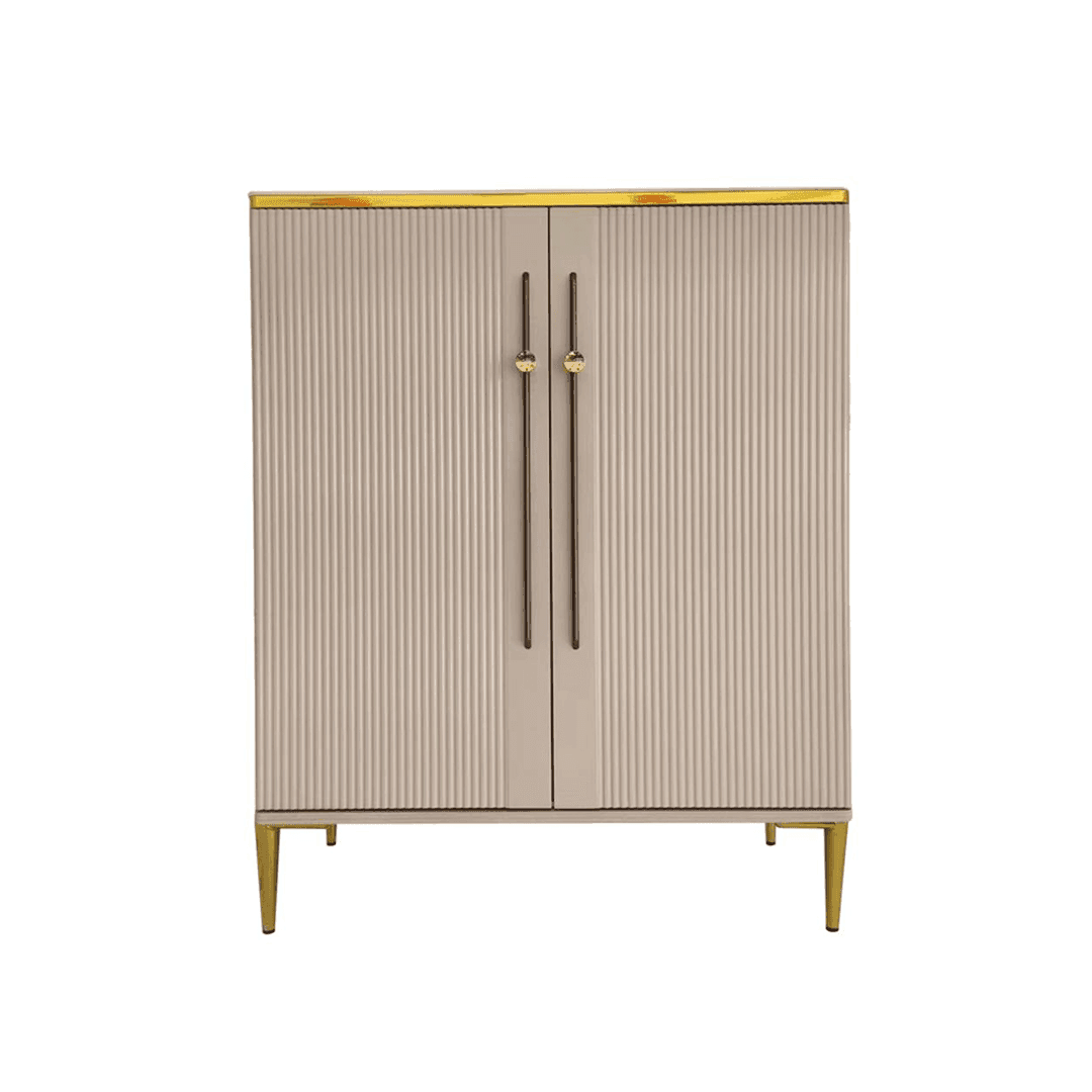 Crafted with an MDF wood structure, the Musco offers a blend of durability and sleek design. The four layers of shelves inside provide ample space, organising your shoes neatly and making clutter a thing of the past. It elevates any entryway or corridor with its sophisticated sintered stone top, a durable and stylish surface that's sure to catch the eyes. Plus, its soft-closing doors ensure a smooth, silent operation. And let's remember the gold legs. They add a chic, modern touch that can complement any home decor.