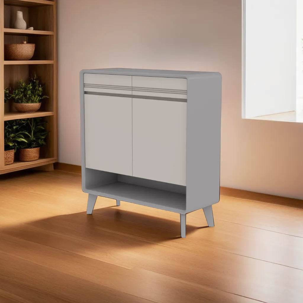 The Sylvie 2 Door Shoe Cabinet features four layers of shelves and offers ample space to store various shoes, from sneakers and sandals to heels and boots. It is crafted from MDF wood and finished in a versatile grey that can blend seamlessly with various decor styles, from contemporary to traditional.