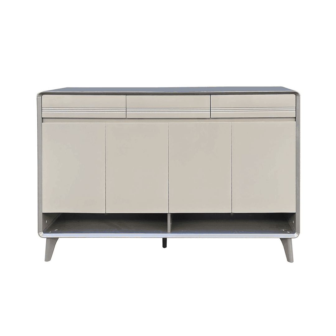 Crafted with a sleek grey finish and sitting pretty on wooden legs, the Sylvie 4 Door Shoe Cabinet brings a cool, modern vibe to any space. With four doors and three drawers, all featuring soft-closing technology, you can say goodbye to the bangs and slams! Plus, those four layers of shelves are like a mini condo for your sneakers and sandals.
