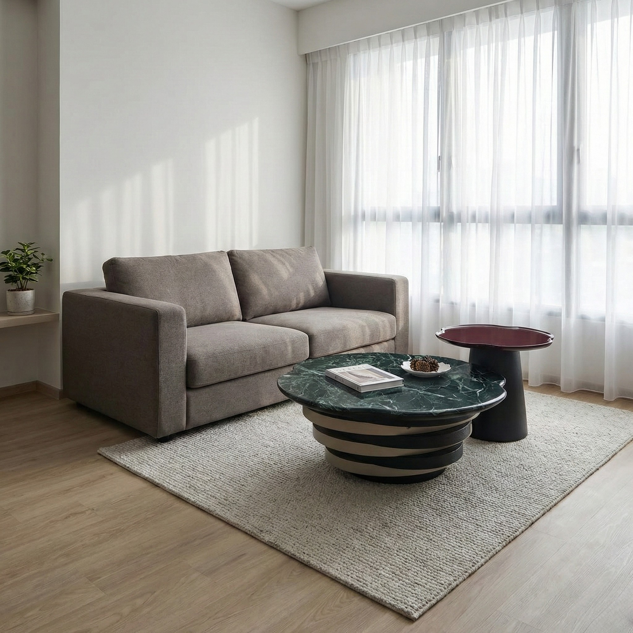 Contemporary Design: Featuring a modern, minimalist silhouette—often in a round or square shape—this table is designed to serve as a stylish focal point. Its clean lines and elemental materials effortlessly fit both modern and classic interior aesthetics.