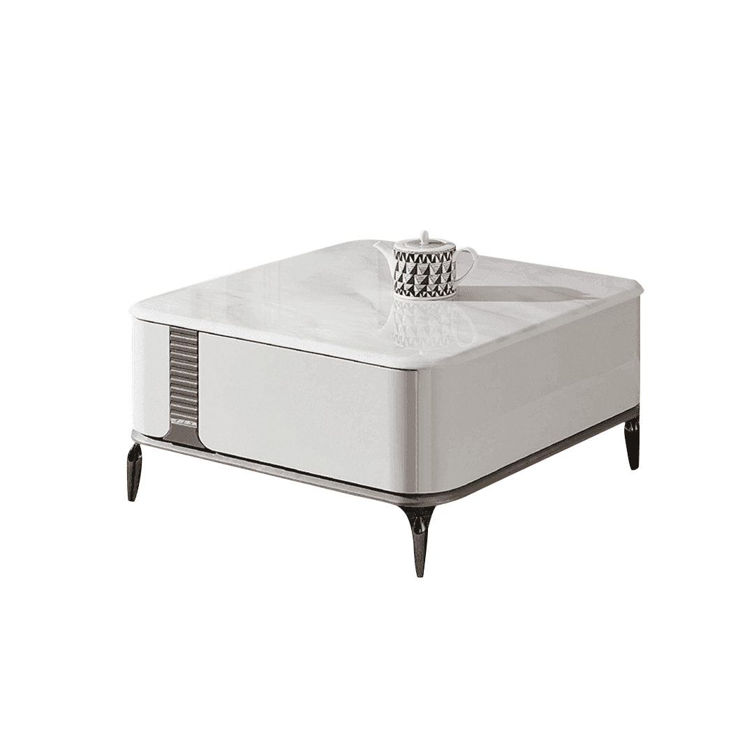 Lucille Square Coffee Table with Cultured Marble Top in White (80cm)