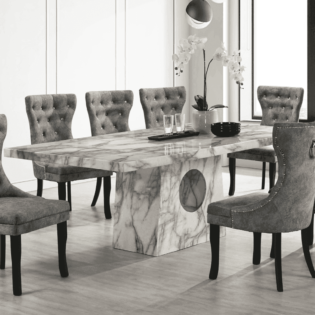 Rigur Marble Dining Table + Segin Chesterfield Dining Chair (1+8)