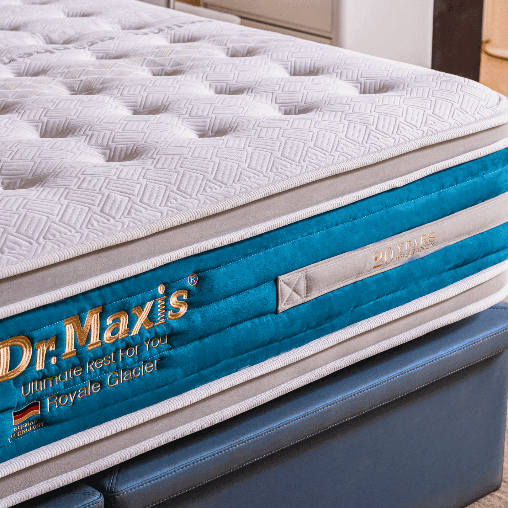 Experience a refreshing level of luxury with the Dr. Maxis Royale Glacier mattress, known for its exceptional comfort and durability. Crafted with 100% natural latex and a 7 zone individual barrel pocketed spring system, it offers superior support tailored to orthopedic needs, while visco elastic memory foam enhances pressure relief for a more comfortable sleep. Its dual side usage with plush tops on both sides adapts to seasonal preferences, ensuring year-round comfort. This innovative fabric helps regulate body temperature by promoting airflow and wicking away moisture, thereby creating a cooler and more comfortable sleep environment. The minty freshness adds a soothing touch, contributing to a more relaxing and restful night’s sleep. In addition, this mattress contains graphene for anti-static properties that resist bacteria, fungi, and dust mites. Embrace a cleaner, healthier sleep space with this premium mattress, backed by quality and innovation.