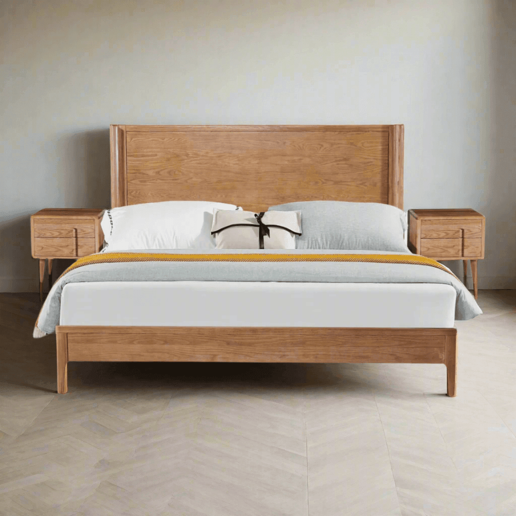 Perfect with Japanese Wabi Sabi bedroom aesthetics, the Astrid Ash Wood Bed Frame embodies simplicity, elegance, and natural beauty with its minimalistic design. Made from high-quality ash wood known for its durability, this wooden bed frame exudes timeless appeal with its clean lines and subtle curves that evoke a sense of harmony, echoing the essence of Wabi Sabi philosophy – finding beauty in imperfection and embracing the natural impermanence of life.