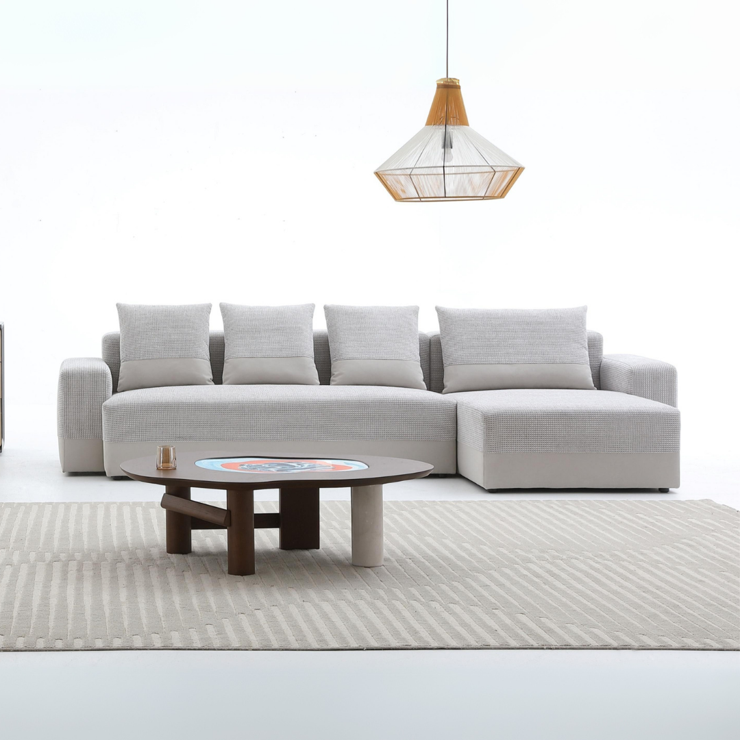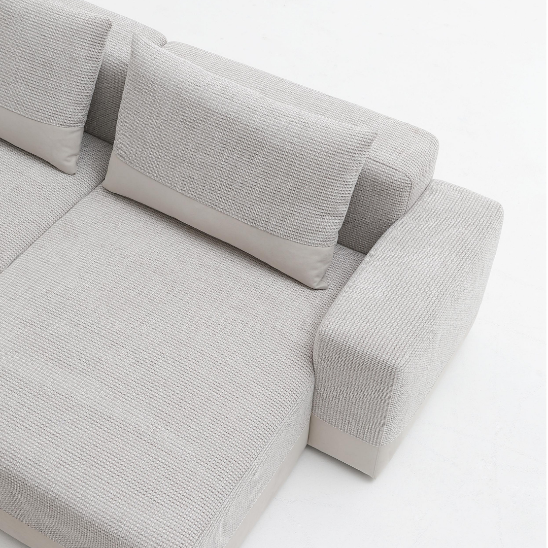 The Pasquale Fabric Sofa blends modern luxury aesthetics with smart functionality. This eye-catching piece features a sophisticated two-tone design – combining soft fabric seating with elegant faux leather accents – perfect for adding contrast and texture to your living space. Complete with low-profile legs and thick armrests, the Pasquale offers both comfort and style in equal measure.