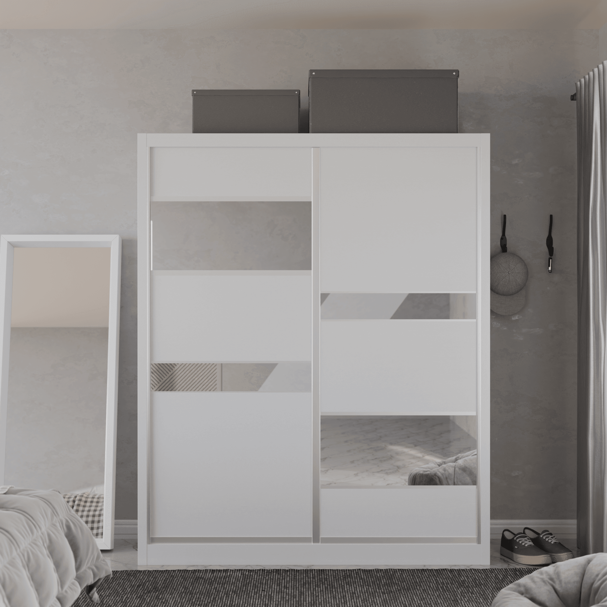 8 feet wardrobe will come in 3 compartments with an additional option to choose the center interior sections
