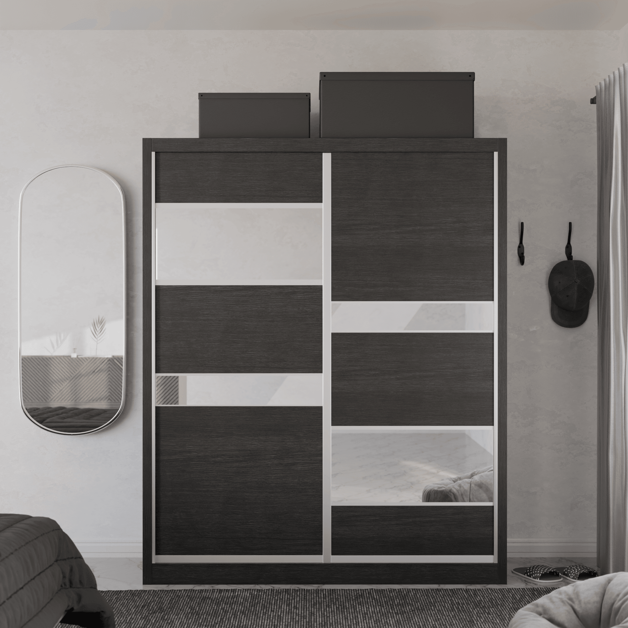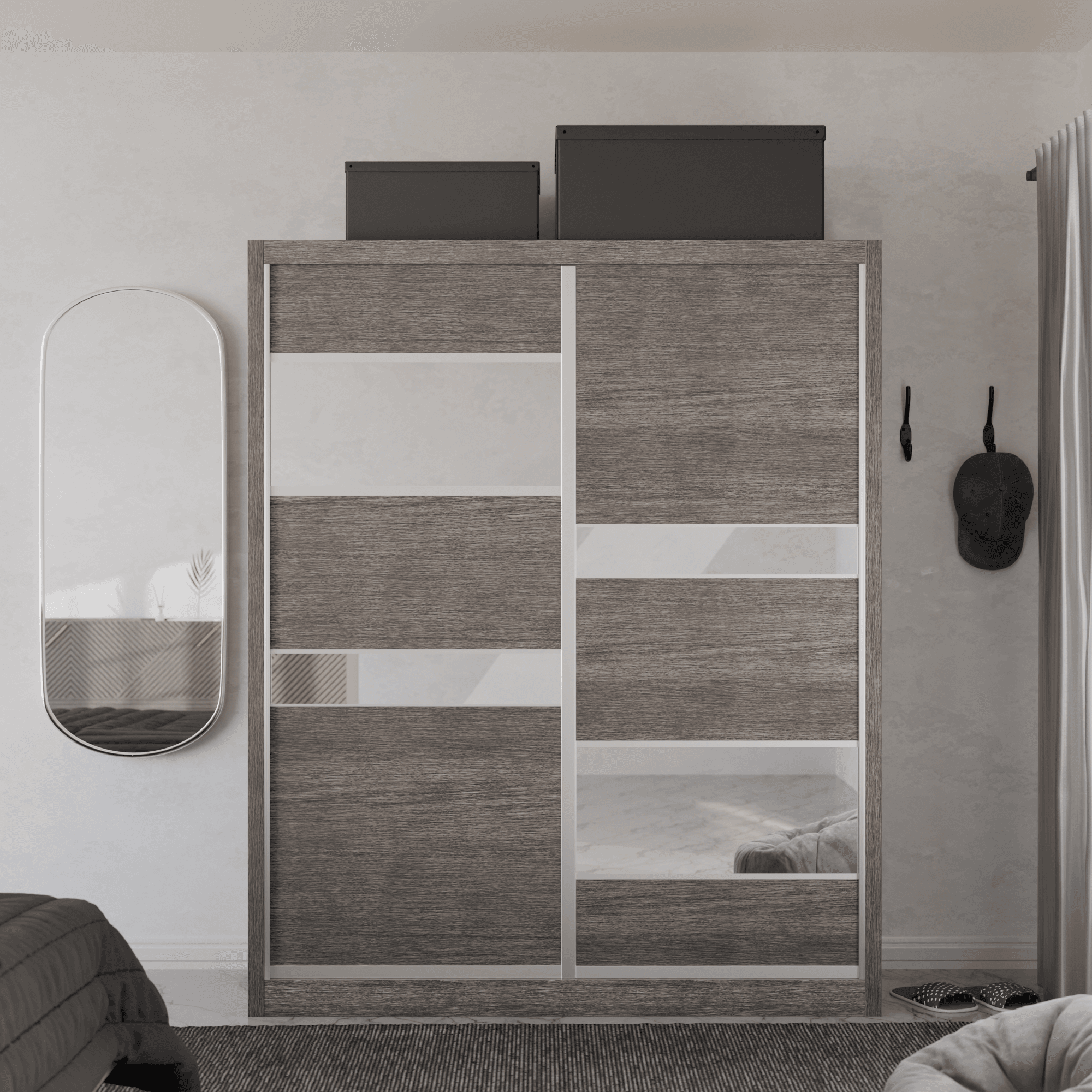 The Micasa Modular Wardrobe frame is constructed with particle board frame, with a plywood backing and laminate finish.
