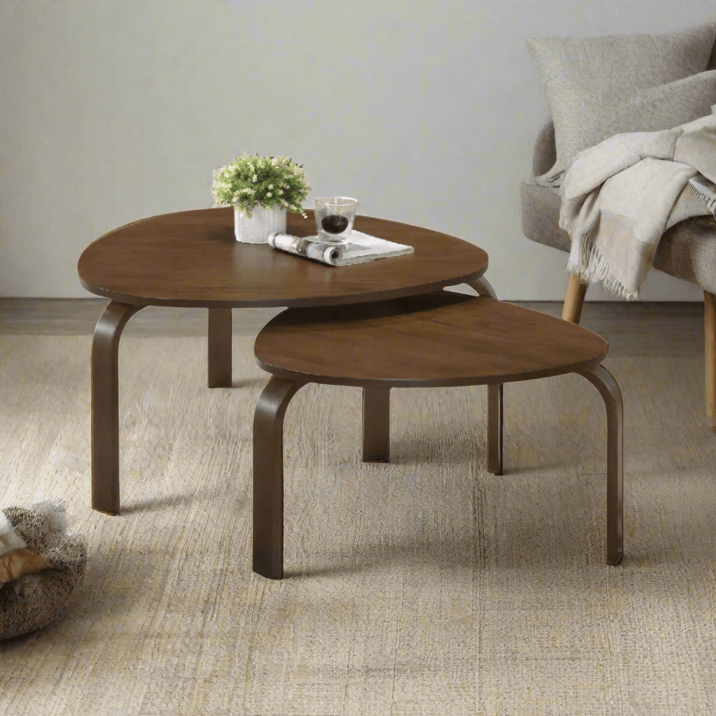 The Quillon Wooden Nesting Coffee Table blends minimalist charm with smart functionality. With its Scandinavian-inspired form and warm medium brown finish, this two-piece set adds both visual interest and versatility to your living space. Crafted from solid wood with a smooth veneer top, it’s perfect for modern homes that value clean lines and compact solutions.