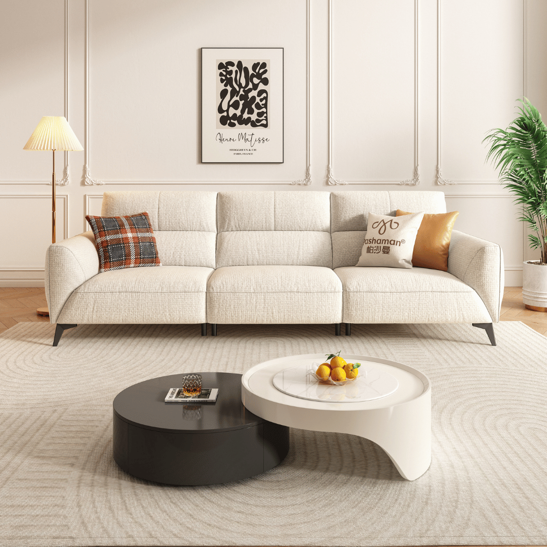 Seamless Power Reclining: Experience relaxation at the touch of a button. The sofa features a smooth, powered reclining mechanism that lets you effortlessly transition to your perfect lounging angle—from sitting upright to a full, comfortable recline.