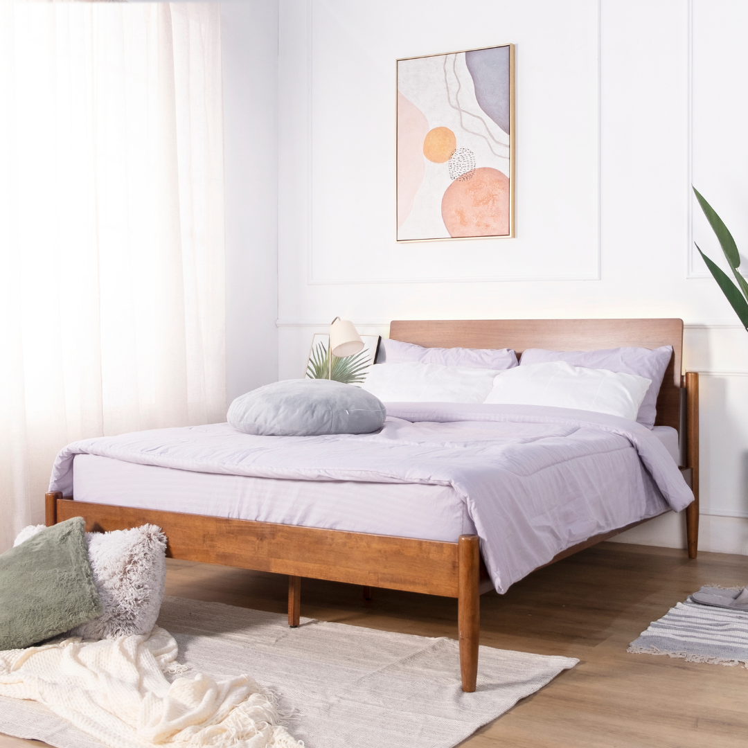 The Gemini Bed Frame is a masterclass in understated elegance. Crafted from sustainably sourced solid rubberwood, it brings the organic beauty of natural grain into your home. Its sturdy construction is matched by thoughtful design details, such as the gently tapered spindle legs and a sophisticated panelled headboard that adds architectural interest without overwhelming your room. Whether you are furnishing a cozy HDB master bedroom or an airy condo suite, the warm wood tones provide an instant sense of "home." The elevated base not only creates a sense of space but also allows for easy cleaning underneath—a practical touch for busy modern living. Built to last through years of morning coffees and late-night reads, it is as reliable as it is beautiful.