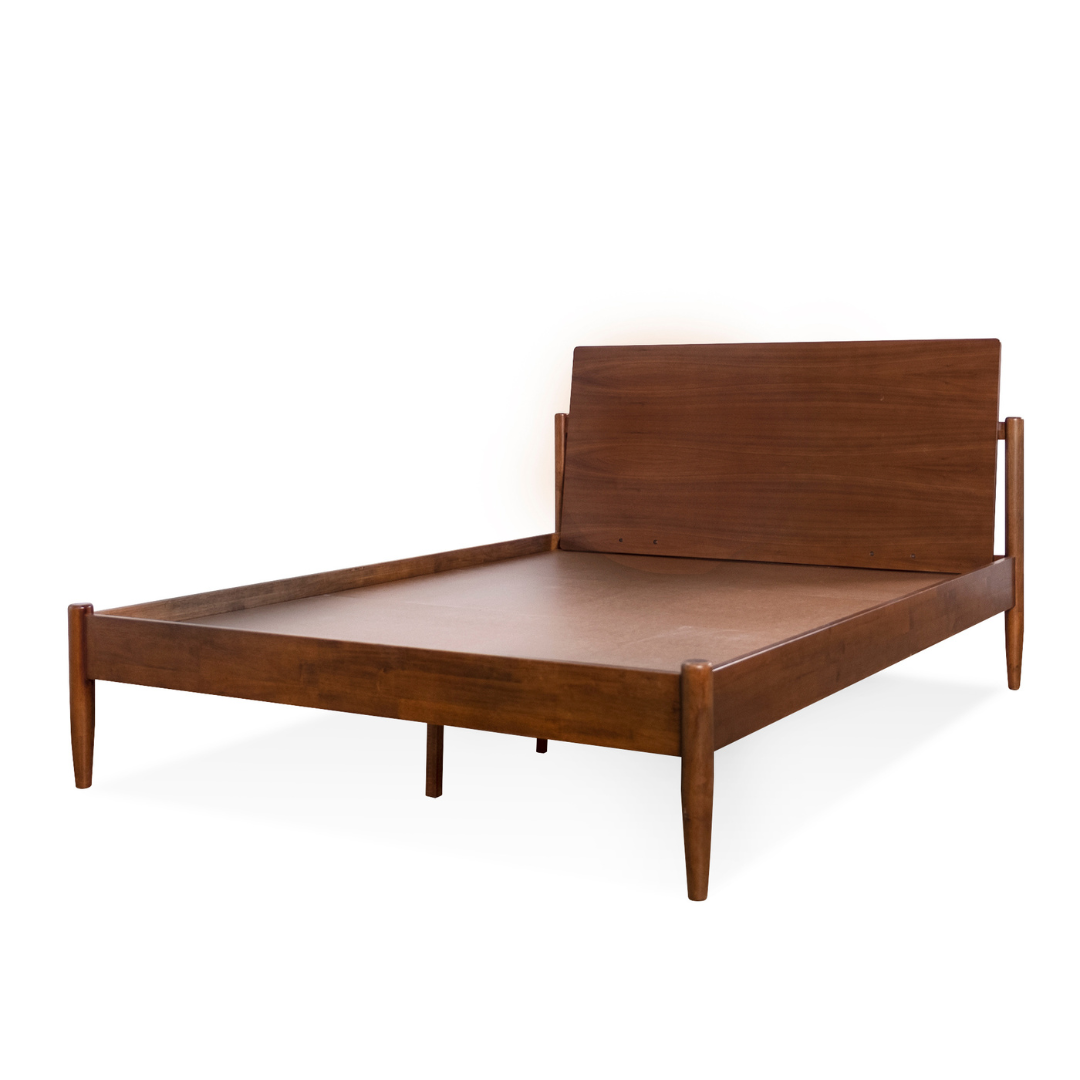| Gemini Wooden Bed - Queen | Natural Walnut Finish | L2084 x W1605 x H1016 mm | Solid Rubberwood |