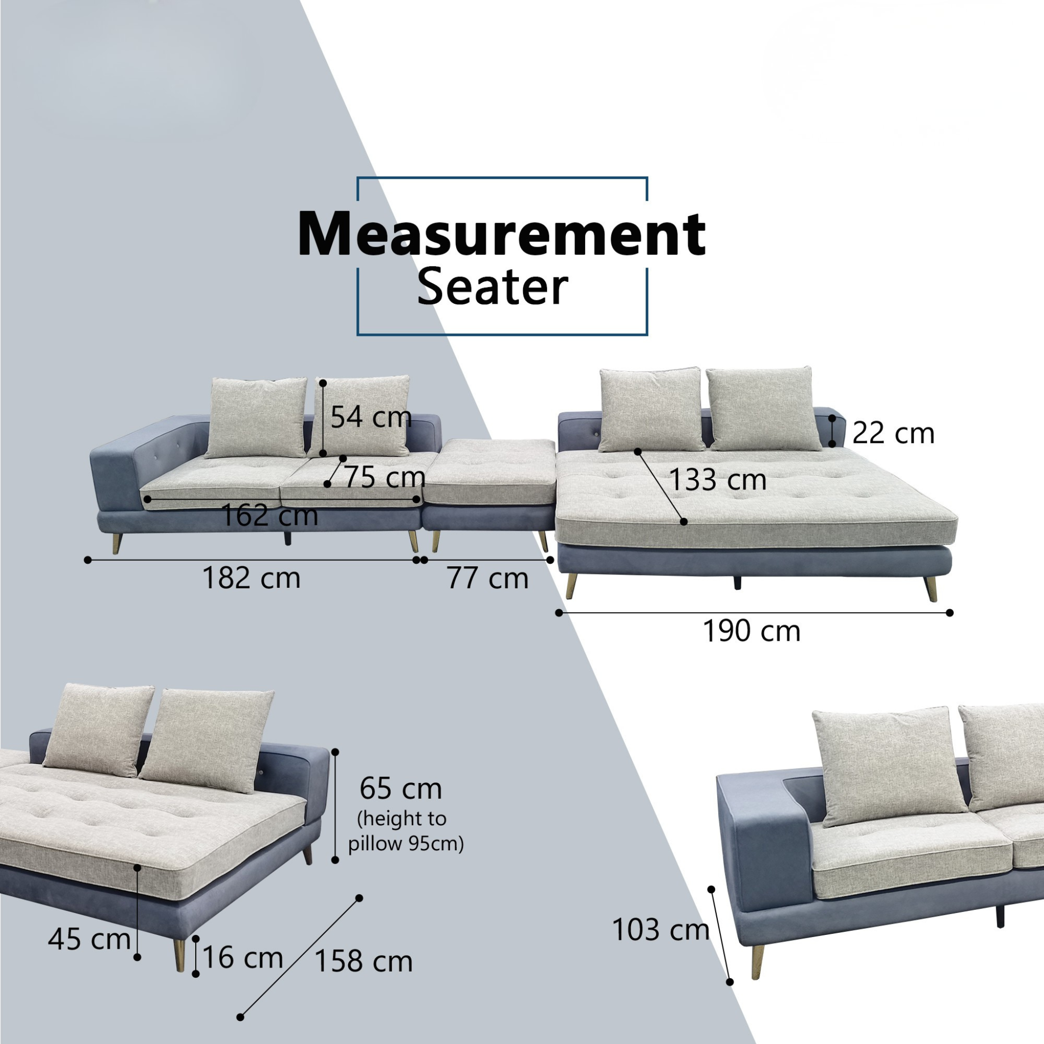 Its wide seating, plush pillow-back cushions, and clean-lined silhouette create a soft, inviting look that pairs beautifully with neutral, minimalist, and Scandinavian-inspired interiors. Slim 16 cm tapered legs lift the sofa gracefully, enhancing its airy, elevated profile.