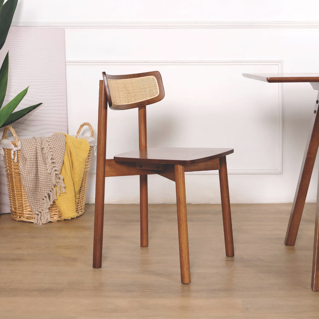 Elevate your dining experience with the Jamerie Wooden Dining Chair. Blending the sturdy reliability of solid wood with the airy, breathable comfort of natural rattan, this chair is designed to bring a warm, sophisticated touch to your interior. Its ergonomic silhouette ensures that long dinners with family and friends are spent in absolute comfort.