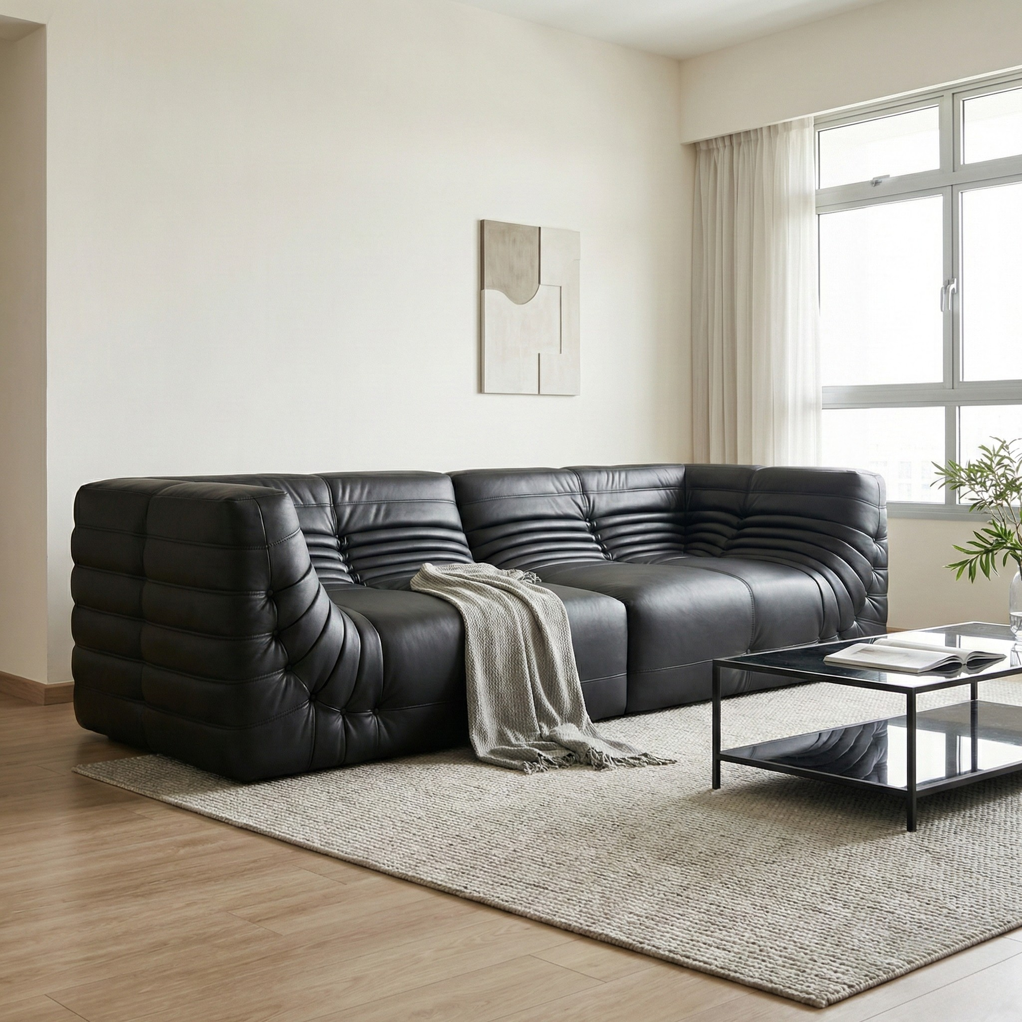 The Marais Leather Sofa blends sculptural architectural design, premium leather craftsmanship, and reinforced structural strength — crafted to elevate contemporary living.