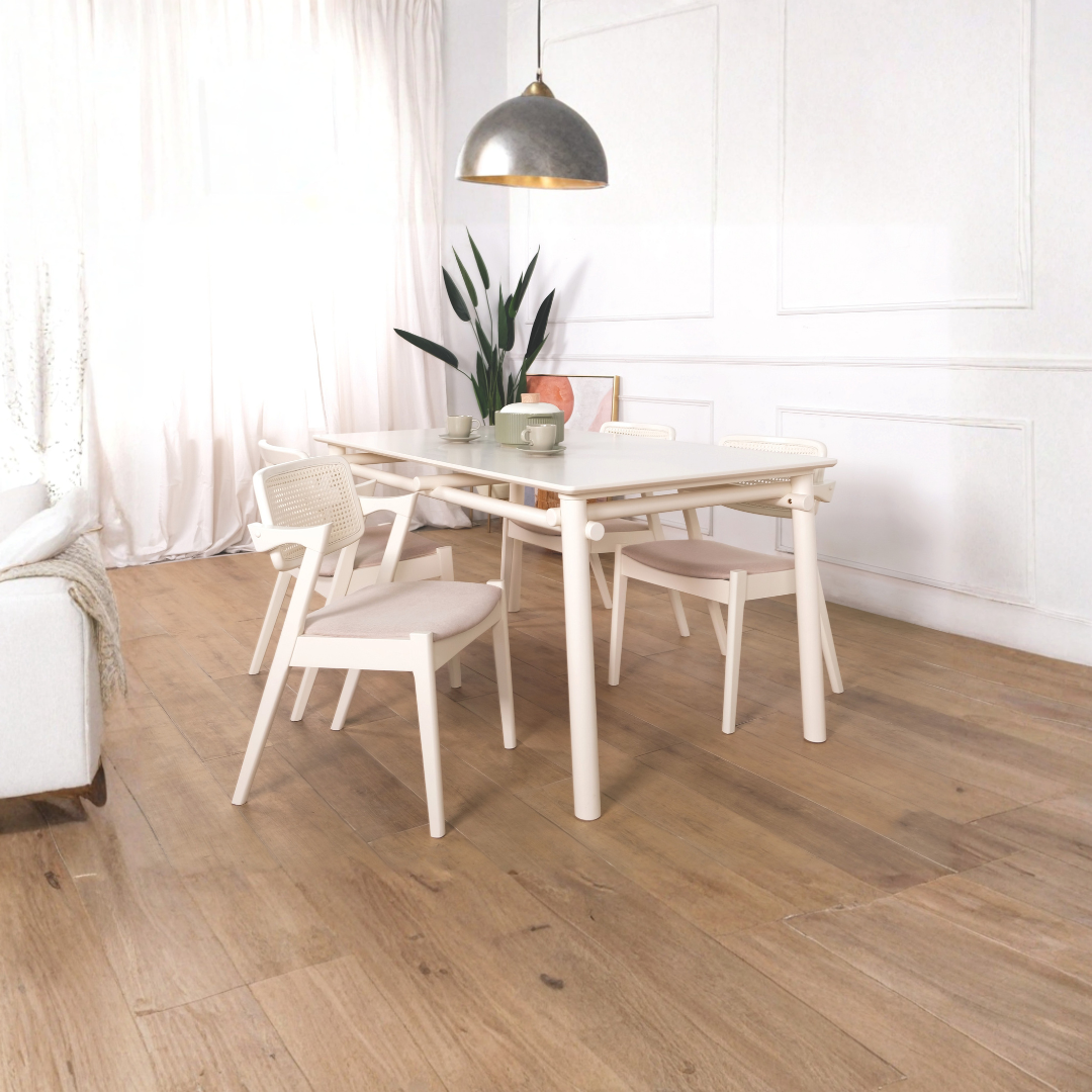 Comfort is guaranteed with the plushly cushioned seat, upholstered in a soft, neutral fabric that complements any colour palette. Whether you’re styling a Japandi-inspired HDB flat or a high-end condo dining room, the Parvin’s versatile finish options—ranging from clean White to rich Walnut—allow you to tailor the mood of your space. Its ergonomic tilt and supportive armrests make it the ideal companion for long dinner conversations and leisurely Sunday brunches.