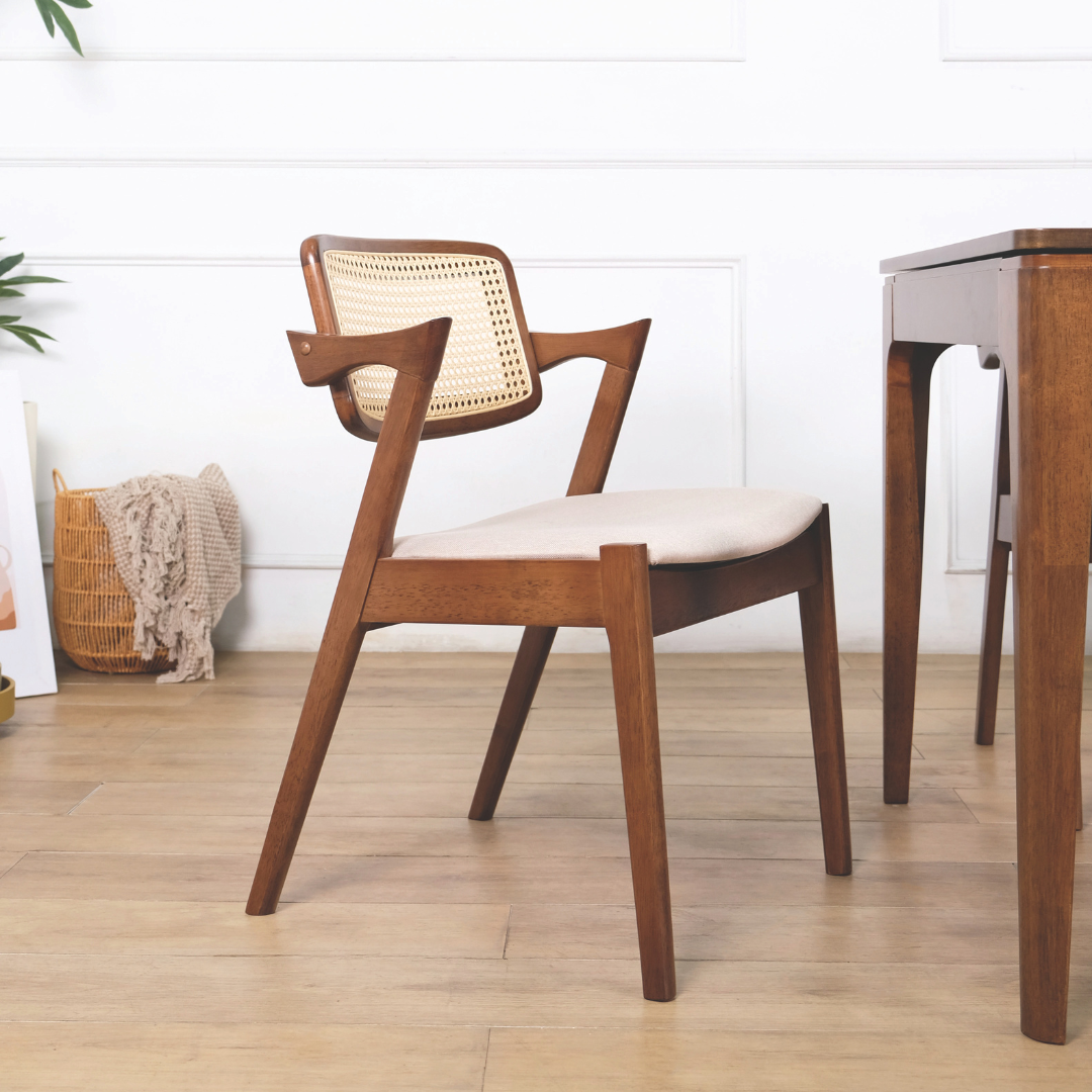 Infuse your dining space with the effortless elegance of the Parvin Rattan Wooden Dining Chair. Combining a striking architectural "Z-frame" with the airy charm of a rattan backrest, this chair is a masterclass in organic modernism. Designed to fit seamlessly into the contemporary Singaporean home, it offers a sophisticated balance of bold geometry and natural warmth.
