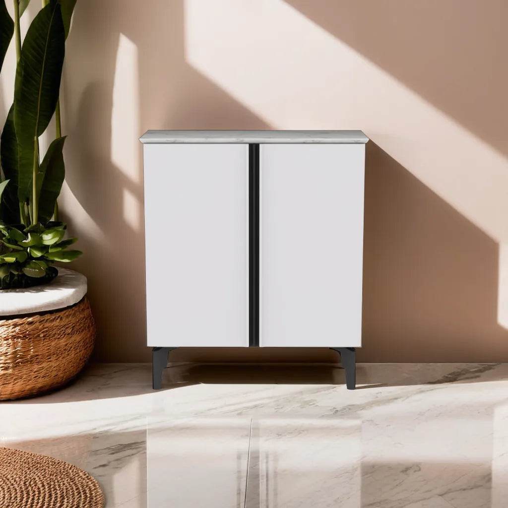 The Petra 2-Door Shoe Cabinet is here to sort out your pile of shoes at the doorway. This compact cabinet keeps your boots in check without eating up space. It's sleek chic and slides right into any nook or cranny, making messy entries a thing of the past.