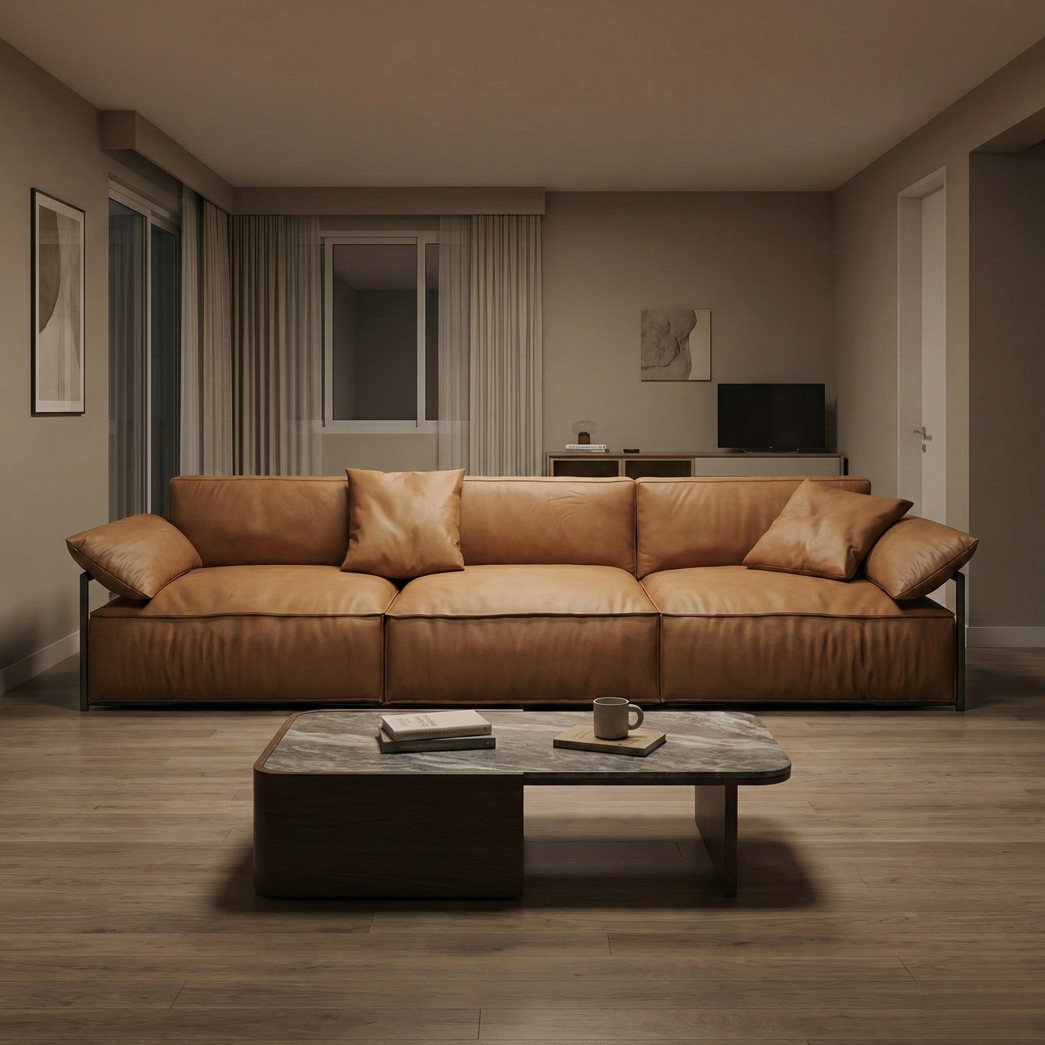The Ridge Leather Sofa blends premium leather craftsmanship, reinforced structural engineering, and titanium-accented modern design — crafted to elevate everyday living.