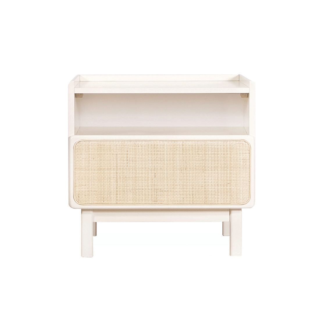 • Eco-friendly woven rattan drawer front for natural ventilation and texture.