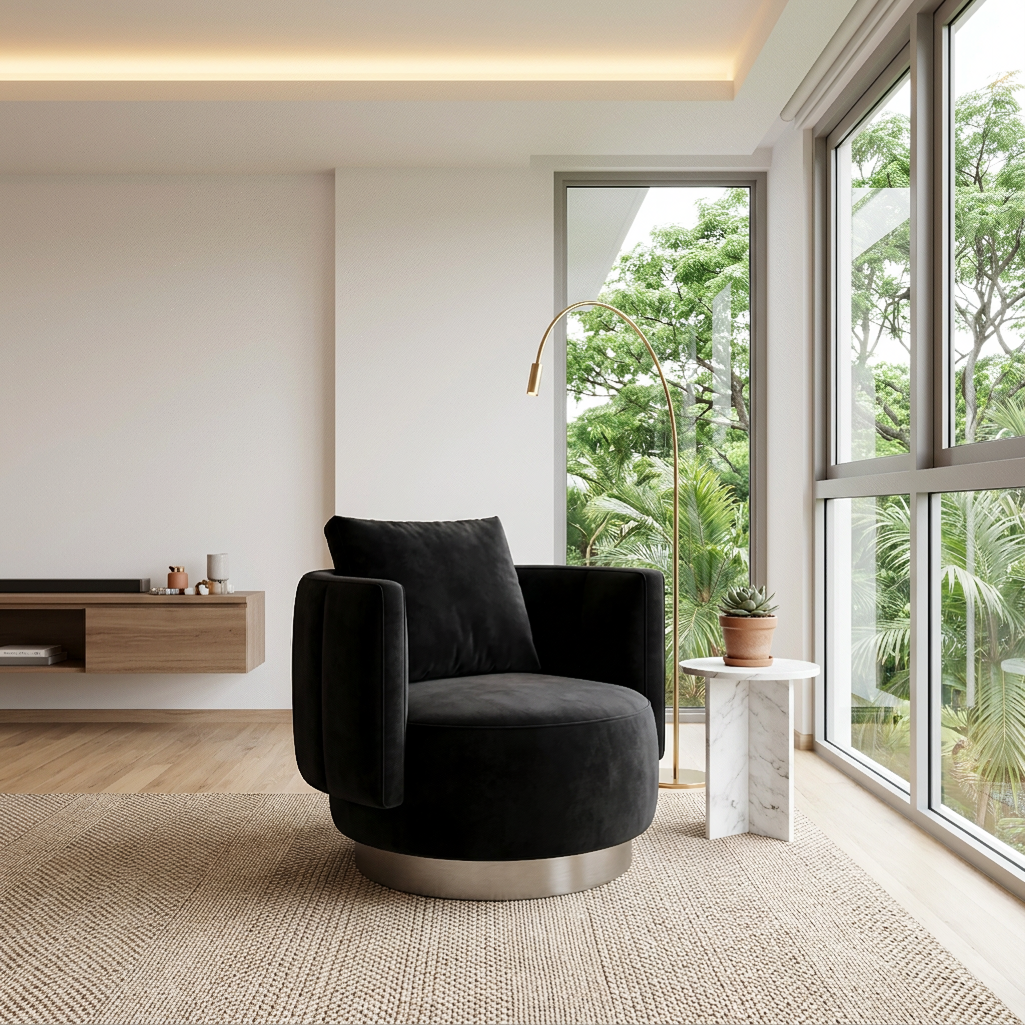 Sculpted Form. Polished Base. Lounge Comfort.