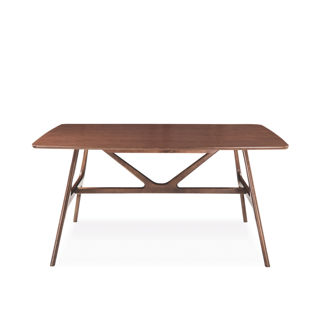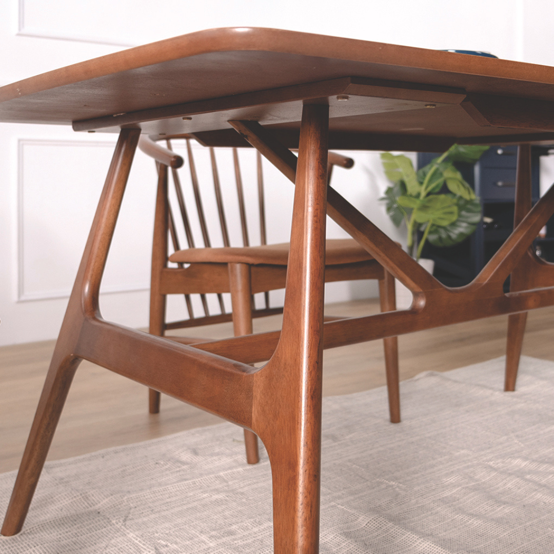 Make a bold statement with the Wembley Wooden Dining Table. Defined by its striking geometric "V-truss" base and seamless organic curves, this table is a masterclass in mid-century modern design. It serves as an artistic focal point while providing the robust functionality needed for the heart of your Singaporean home.