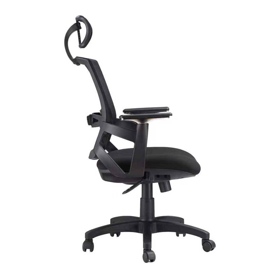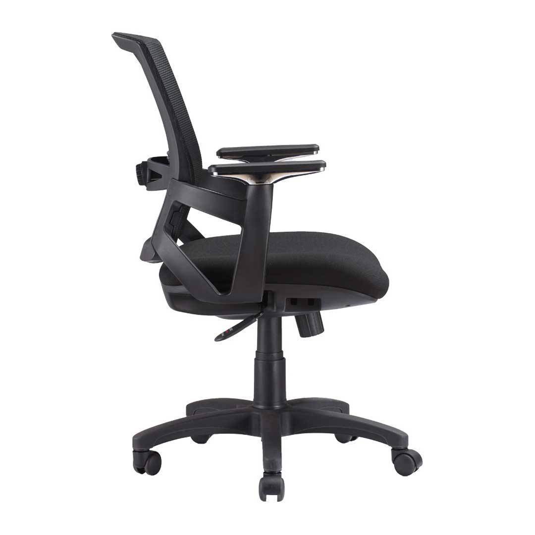 The Harvey Office Chair is a sophisticated addition to your workspace. This ergonomic mesh back swivel chair combines comfort and style, featuring a fabric seat with a moulded foam cushion for optimum support. The one-lever mechanism allows easy tilting and locking, while adjustable armrests enhance flexibility. Benefit from added back lumbar support for a posture-friendly seating experience.