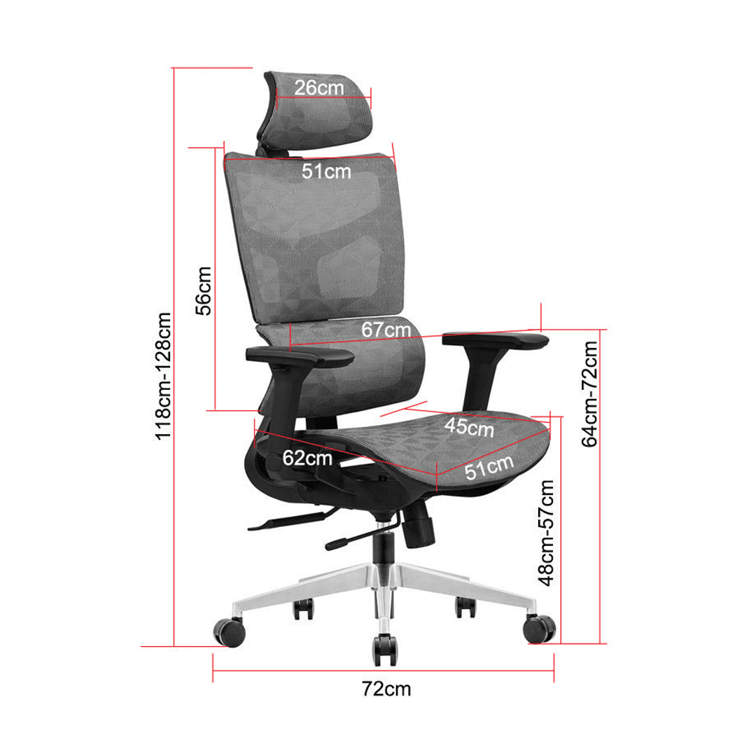 Enhance your work experience with the Levana High Back Mesh Office Chair. With its 3D high density mesh headrest, breathable mesh backrest, and full hydrophilic nylon fiber, this chair offers maximum comfort. Additionally, its adjustable seat, armrests, and lumbar support provide customizable support for long periods of sitting. The chair also features full chrome plated legs and PU caster wheels for added durability and mobility.