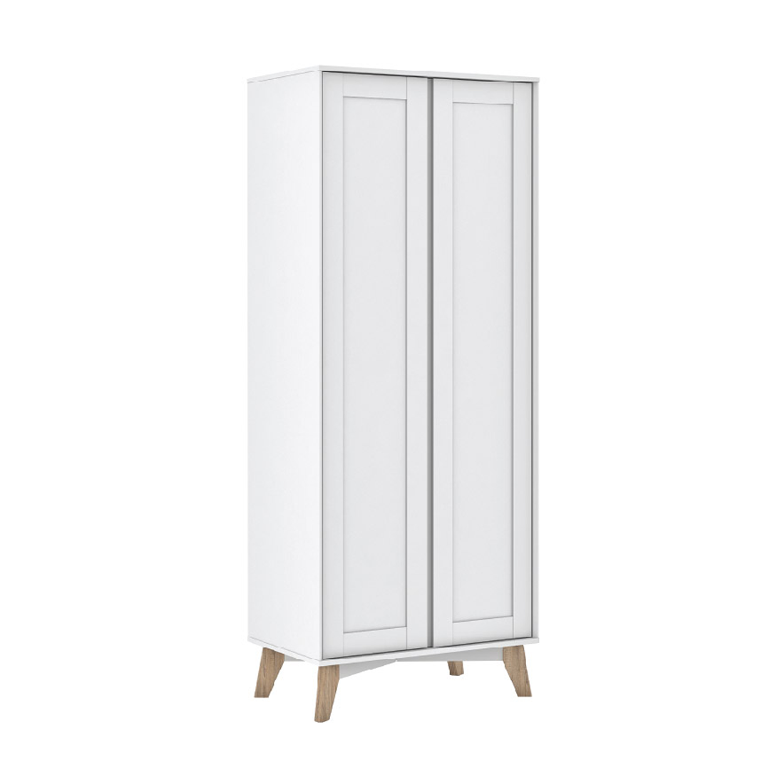 The Xandra 2 Door White Wardrobe is designed to bring both elegance and practical storage into your bedroom. Crafted from sturdy white particle board with MDF board doors, this wardrobe showcases a minimalist look, enhanced by subtle farmhouse accents. Its neutral palette fits seamlessly into a variety of interior styles, from Scandinavian to contemporary rustic.