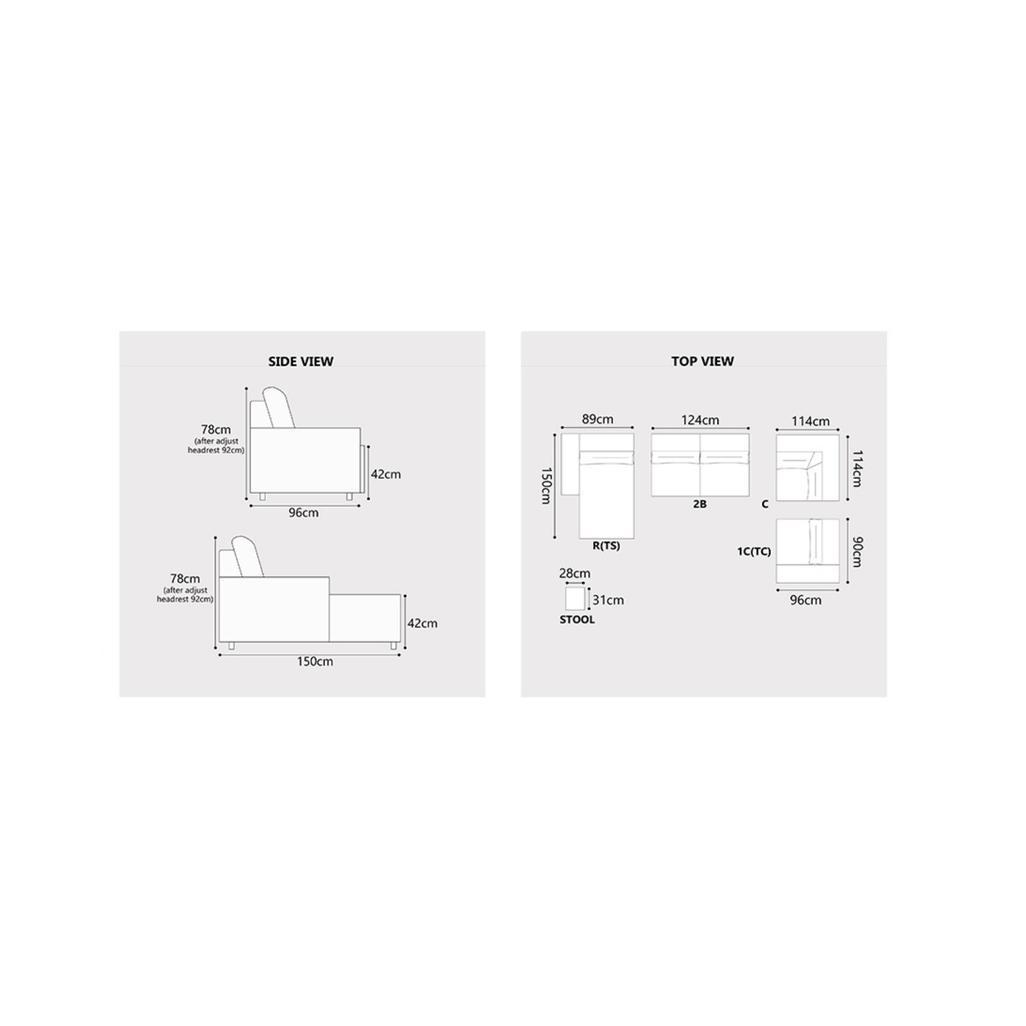 Designed with adjustable headrests, each seat allows the headrest to move up or down for customized neck and head support. The sofa also features a built-in armrest console box with cup holders for added convenience, along with a matching stool that enhances lounging comfort and seating flexibility. Clean lines, supportive cushioning, and a spacious L-shaped layout make Meren both visually refined and exceptionally practical.