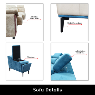 Velen Fabric Adjustable Headrest L-Shaped Corner Slider Sofa by Esteller (Pet Friendly & Easy Clean)