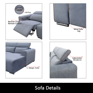 Orynth Fabric Adjustable Headrest Recliner L-Shaped Sofa by Esteller (Pet Friendly & Easy Clean)