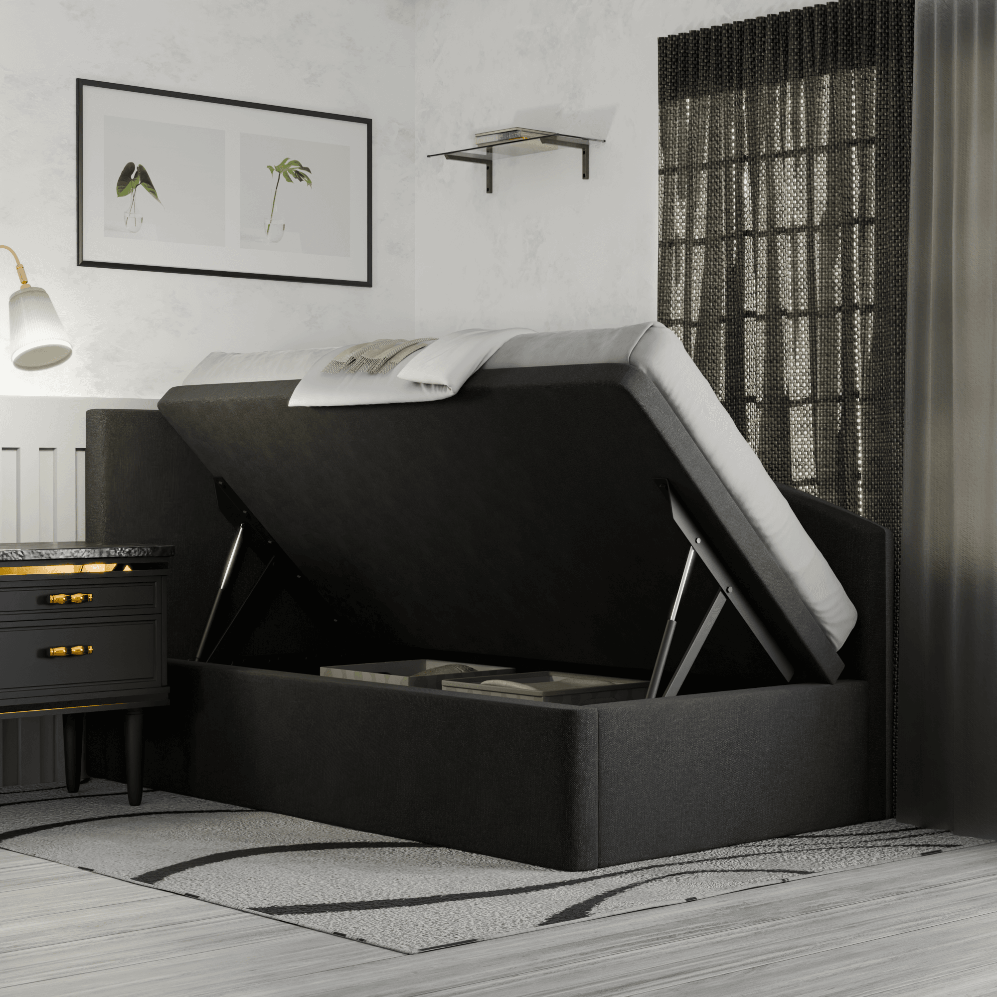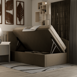 Unleash your inner adventurer with the Gales Fabric Side Storage Daybed. Featuring a gaslift mechanism and ample space, this daybed allows you to take risks and maximize your storage potential. Get ready to conquer your day in style and comfort!