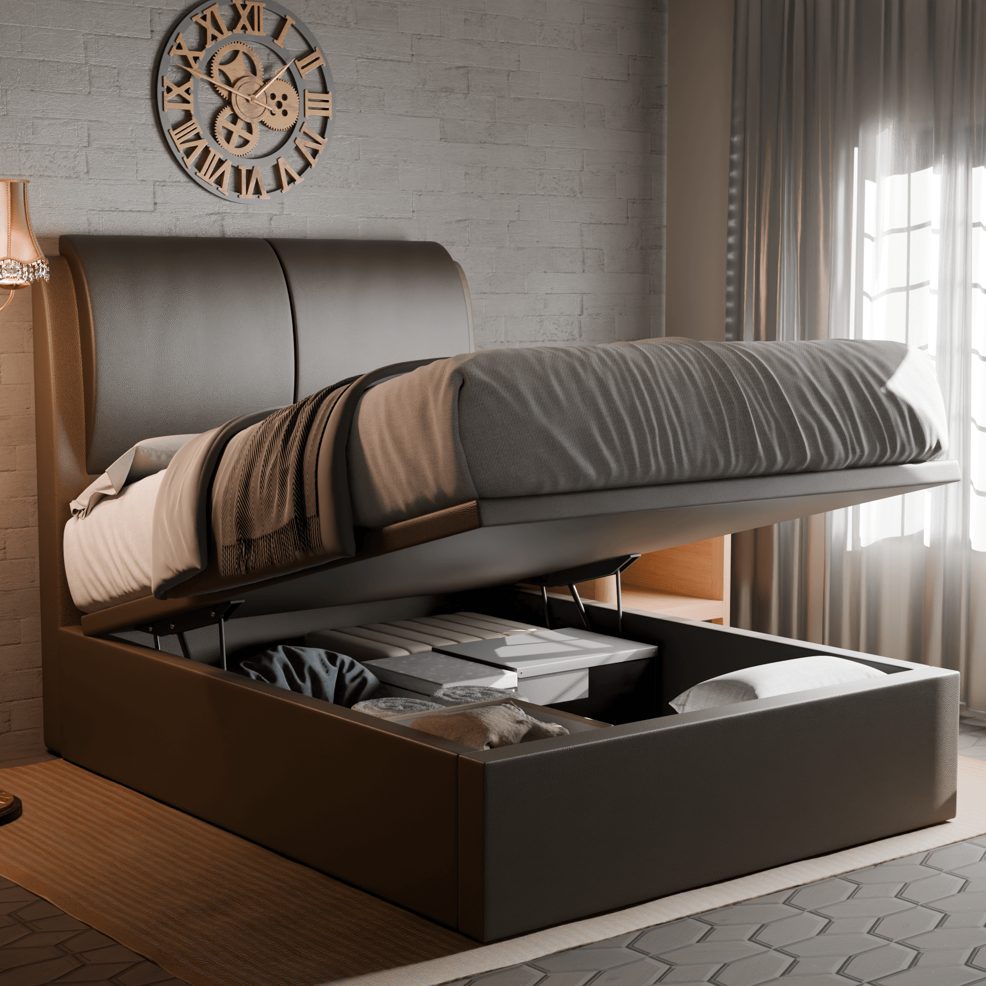 Elevate your bedroom with the luxurious Berke Faux Leather Storage Bed. Crafted with exquisite faux leather and offering ample storage space, this bed is both functional and stylish. Upgrade your sleeping experience with the Berke bed and indulge in the ultimate blend of sophistication and practicality.
