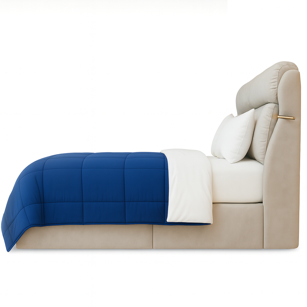 The padded vertical-panel headboard creates a clean, structured look while providing comfortable back support for reading or lounging. Its sturdy base ensures long-lasting stability, while the soft, neutral fabric blends seamlessly into any décor style — from minimalist to contemporary.