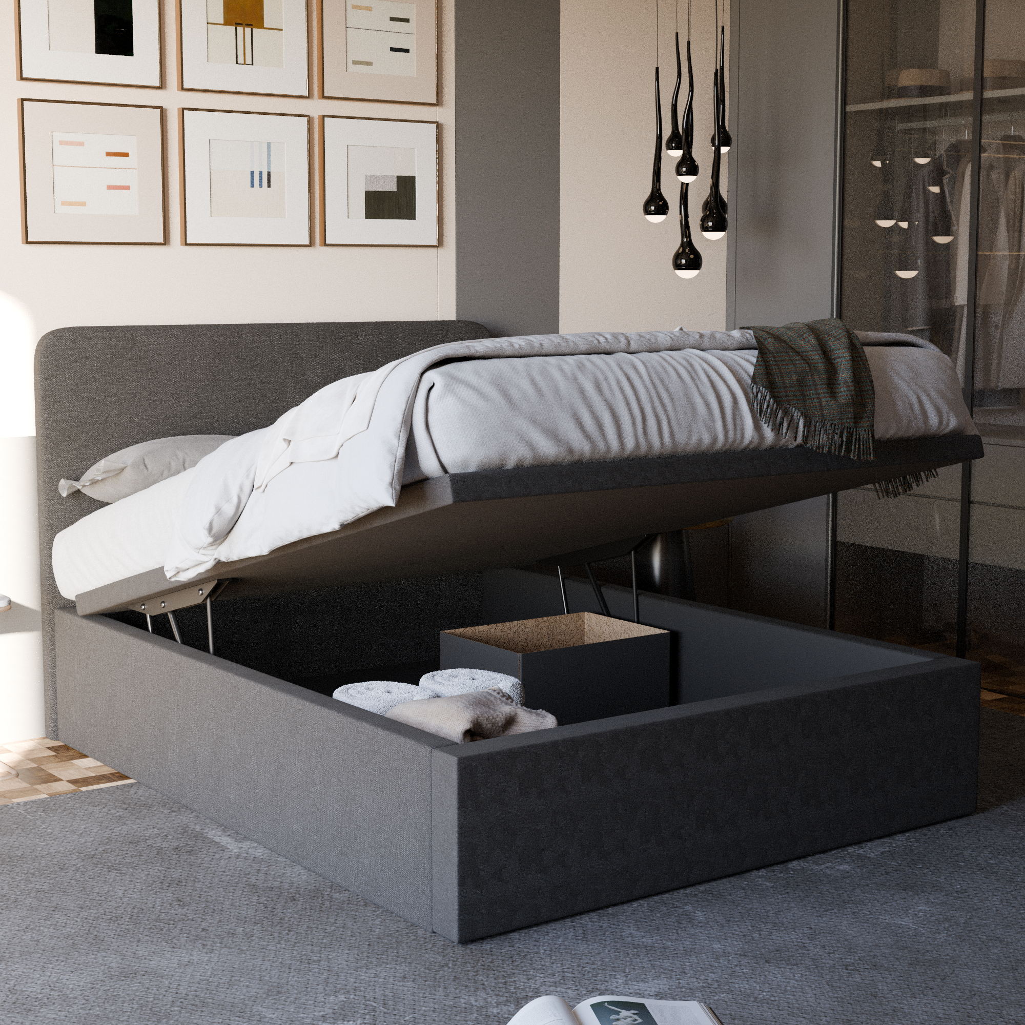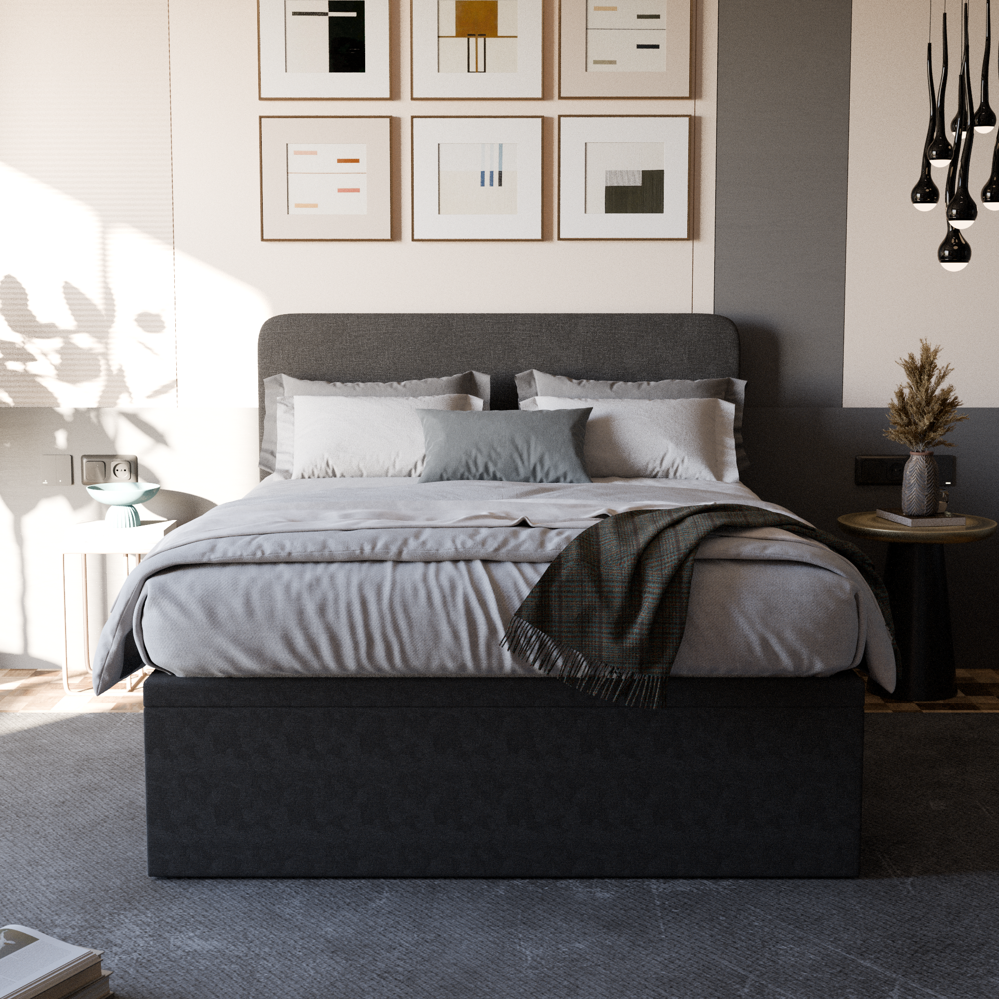 Space constraints often presents big demands for smart storage solutions. Campo Fabric Storage Bed offers generous storage (without compartments) concealed within the divan platform. Equipped with high-quality hydraulic system, storage space can be accessed easily.
