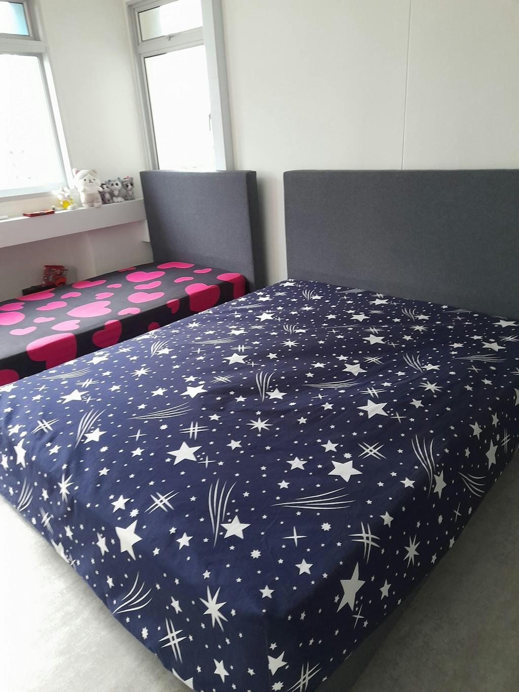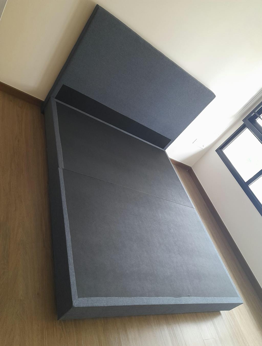 Sleek, stylish, comfortable, spacious- Devonne Grey Fabric Bed Frame provides everything you've been looking for a modern bed. This unit is made with solid wooden frame and cosy foam padding for a secured and comfortable sleep. Its simplistic design is perfect for any interior style.