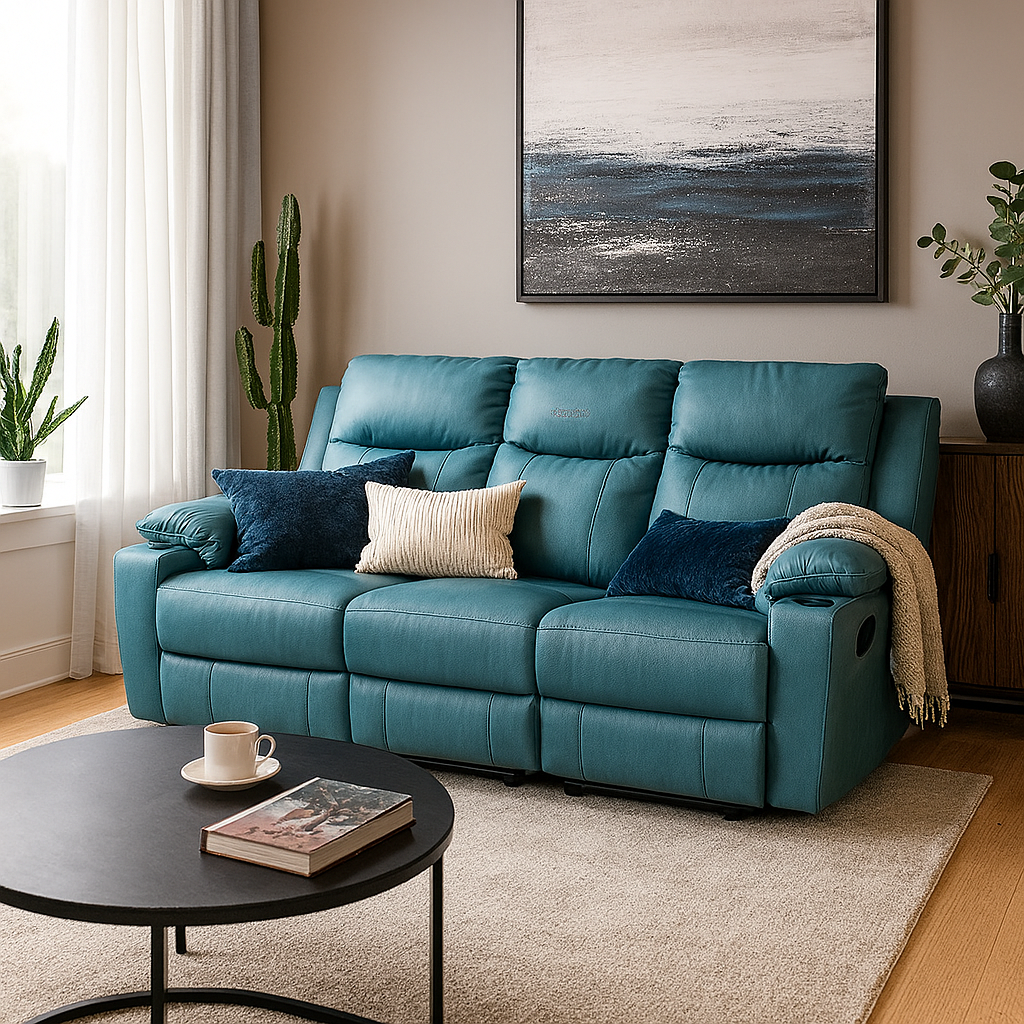 Indulge in luxury with the Arabella Genuine Leather Manual Recliner Sofa. Crafted with the finest leather, this sofa offers unmatched comfort and sophistication. The manual recliner feature allows you to find your perfect reclining position, ensuring an exquisite lounging experience. Elevate your living space with this elegant and exclusive sofa.